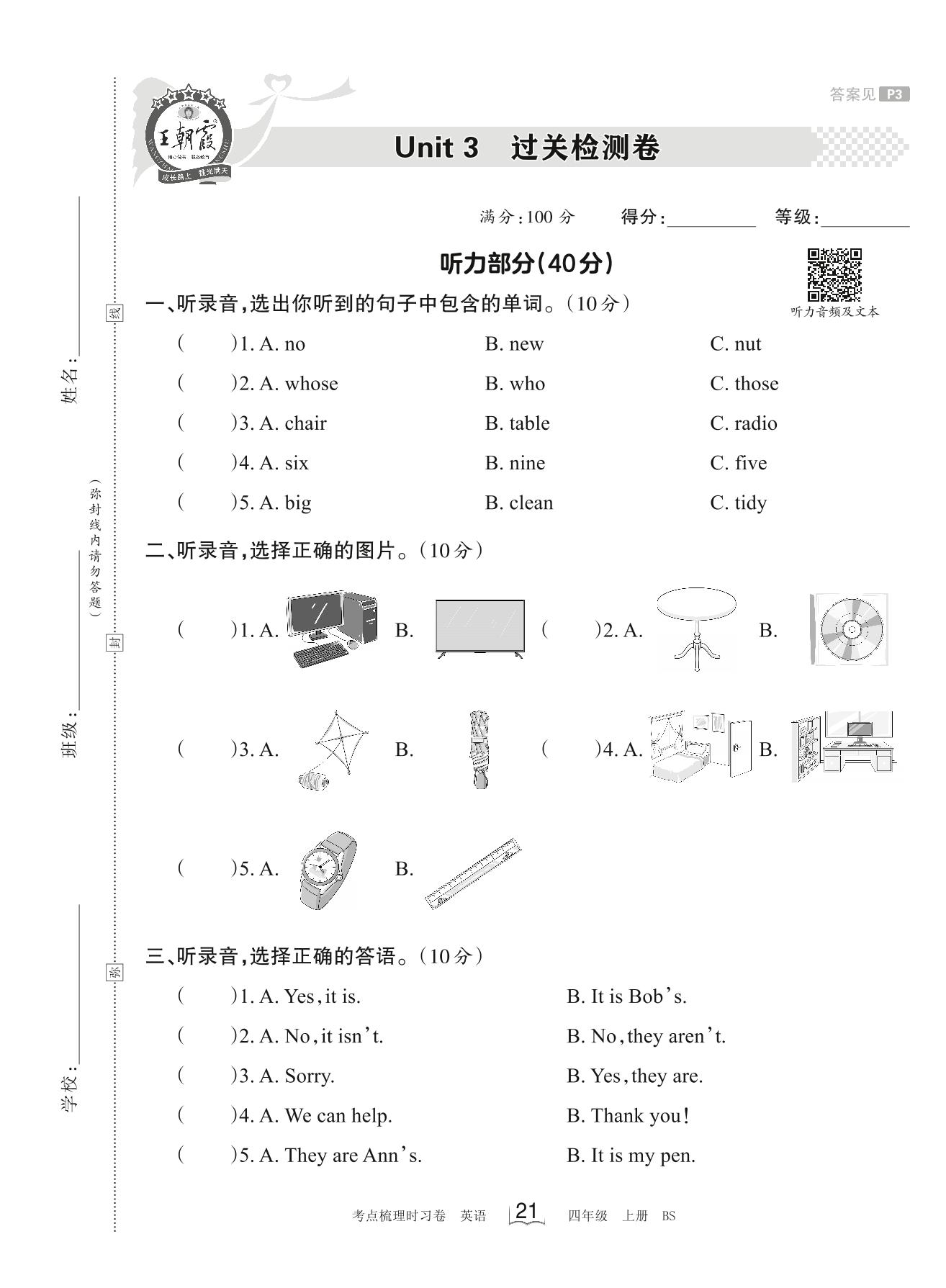 2023上册四年级英语北师版 Unit 3 过关检测卷