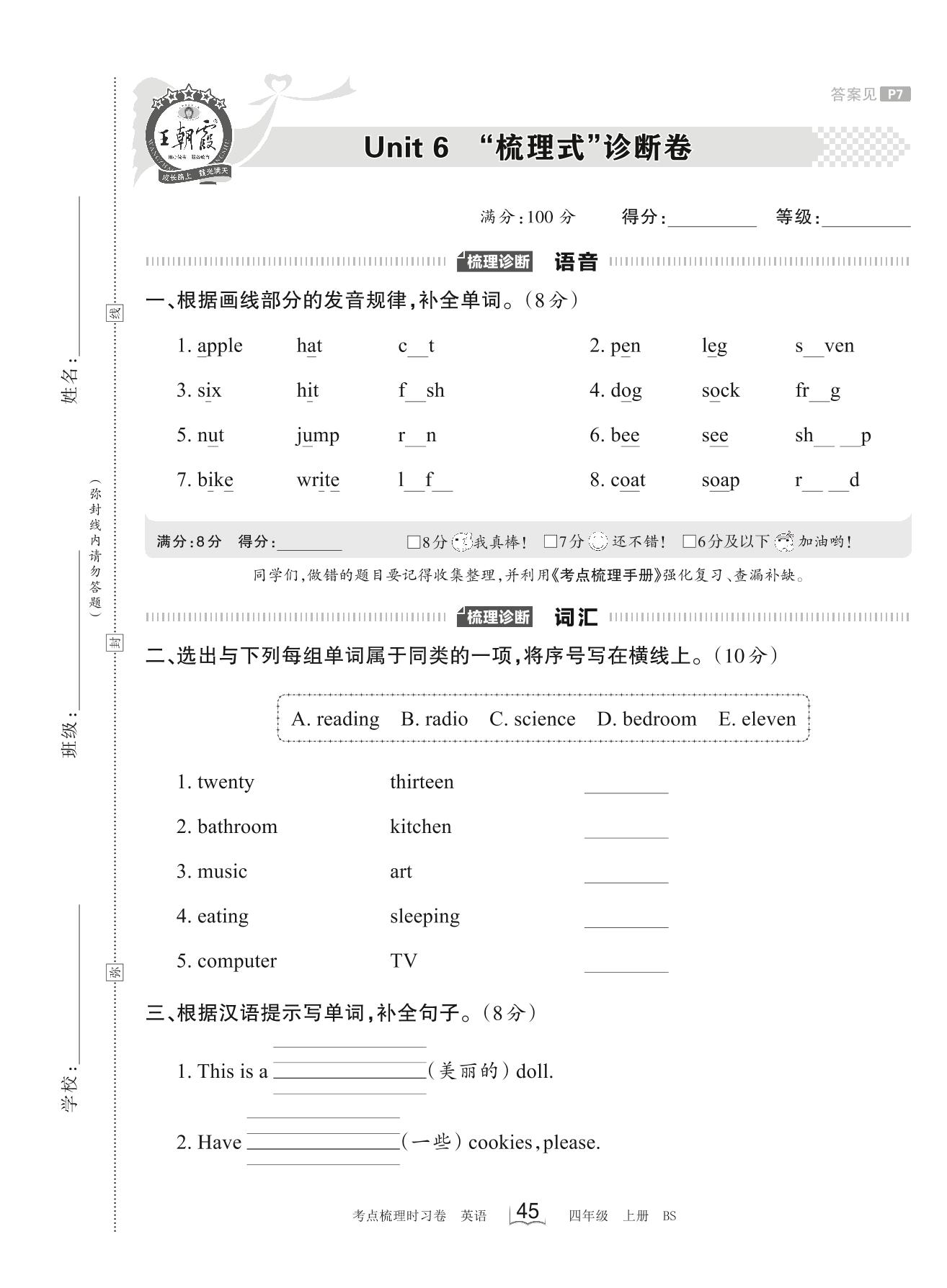 2023上册四年级英语北师版 Unit 6 “梳理式”诊断卷