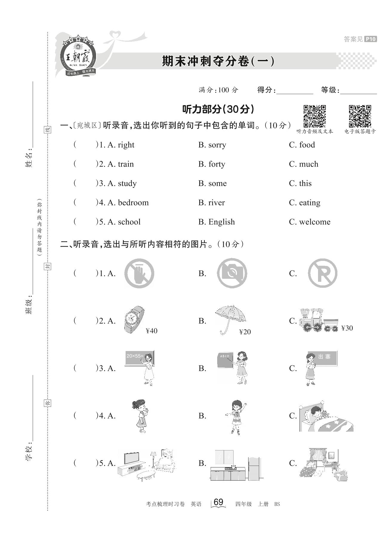 2023上册四年级英语北师版 期末冲刺夺分卷(一)