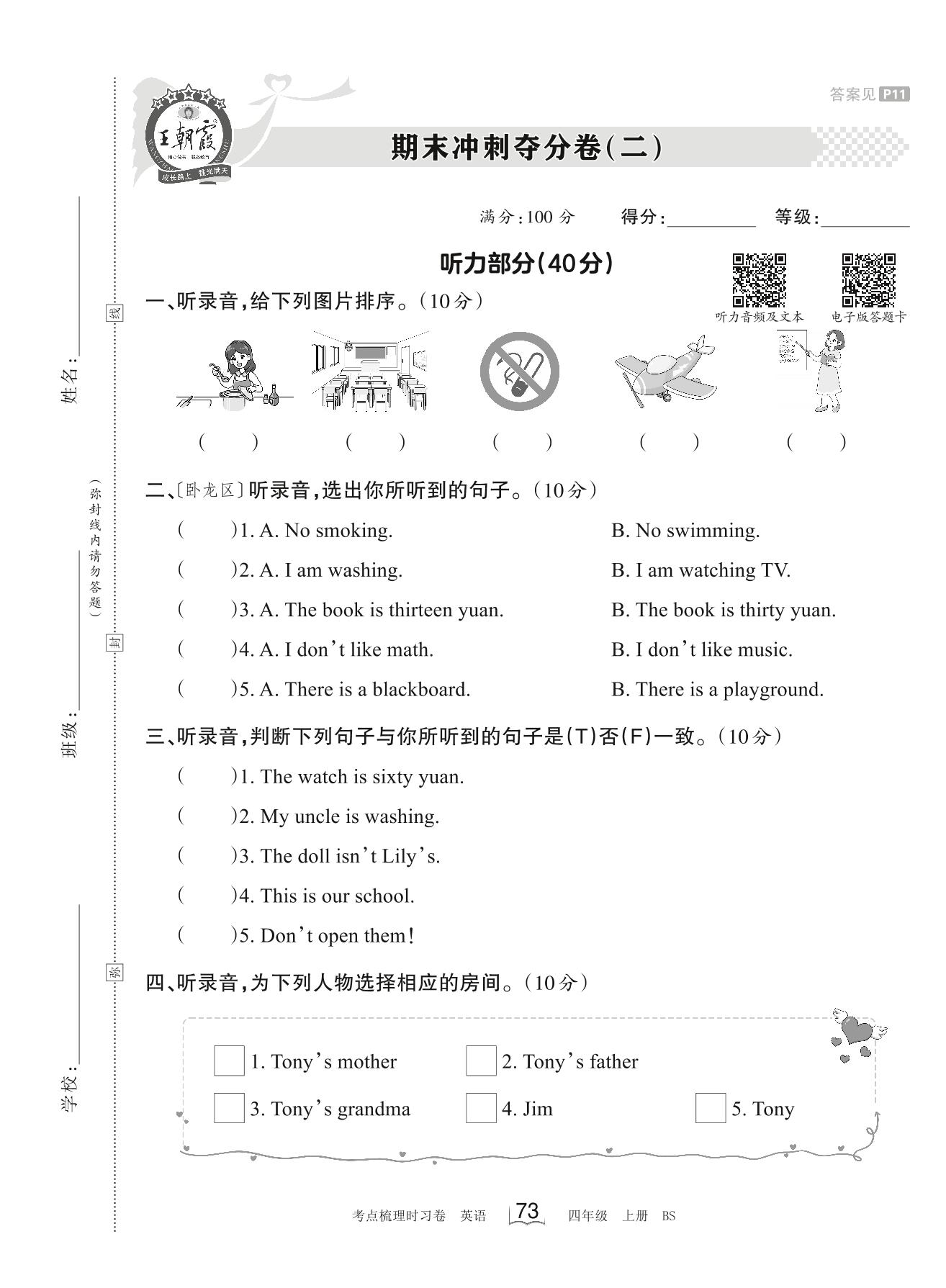 2023上册四年级英语北师版 期末冲刺夺分卷(二)