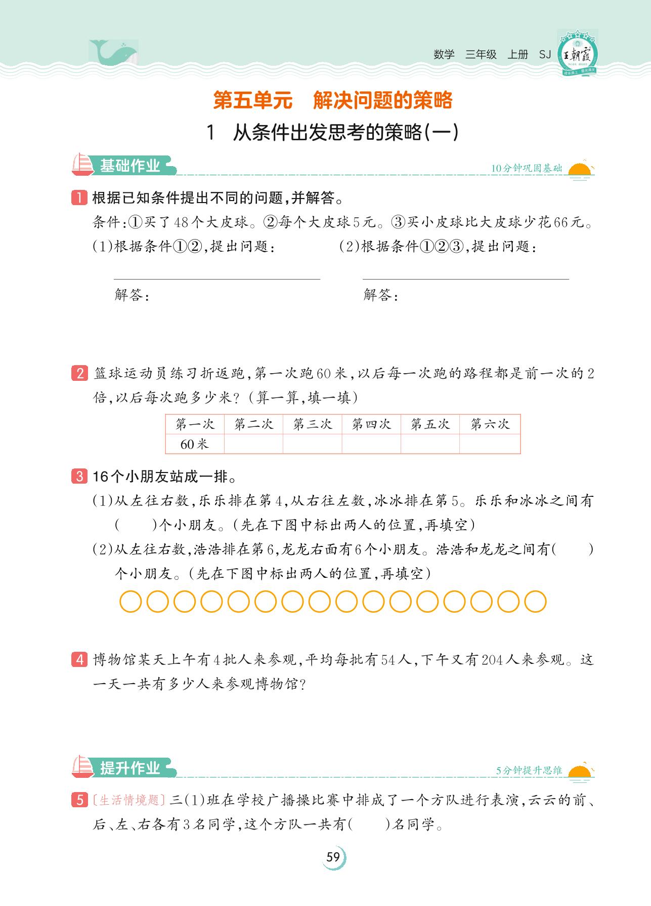 2023上册三年级数学苏教版 第五单元 解决问题的策略——1 从条件出发思考的策略(一)