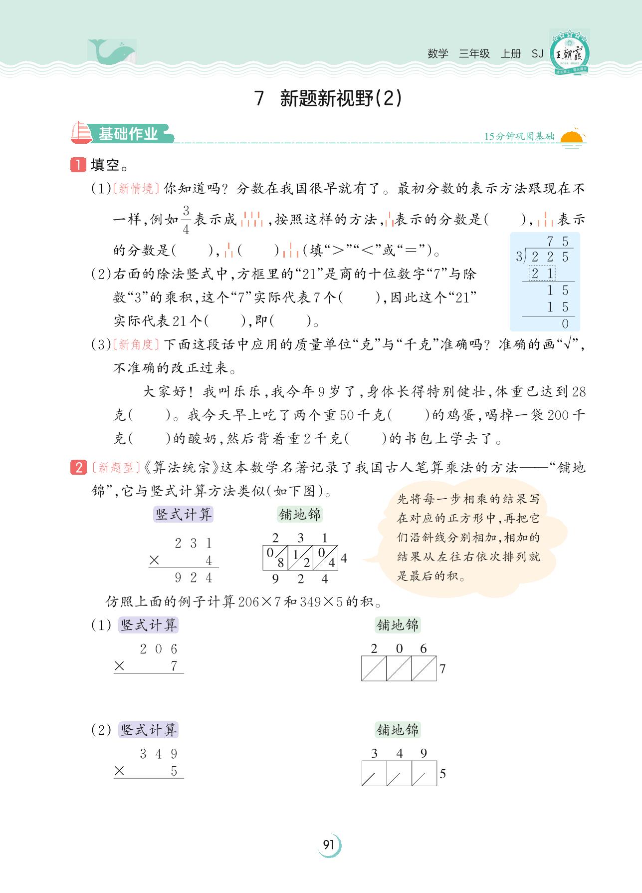 2023上册三年级数学苏教版 第八单元 期末复习——7 新题新视野(2)