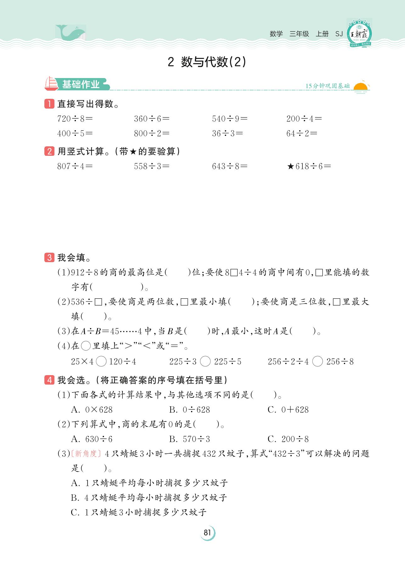 2023上册三年级数学苏教版 第八单元 期末复习——2 数与代数(2)