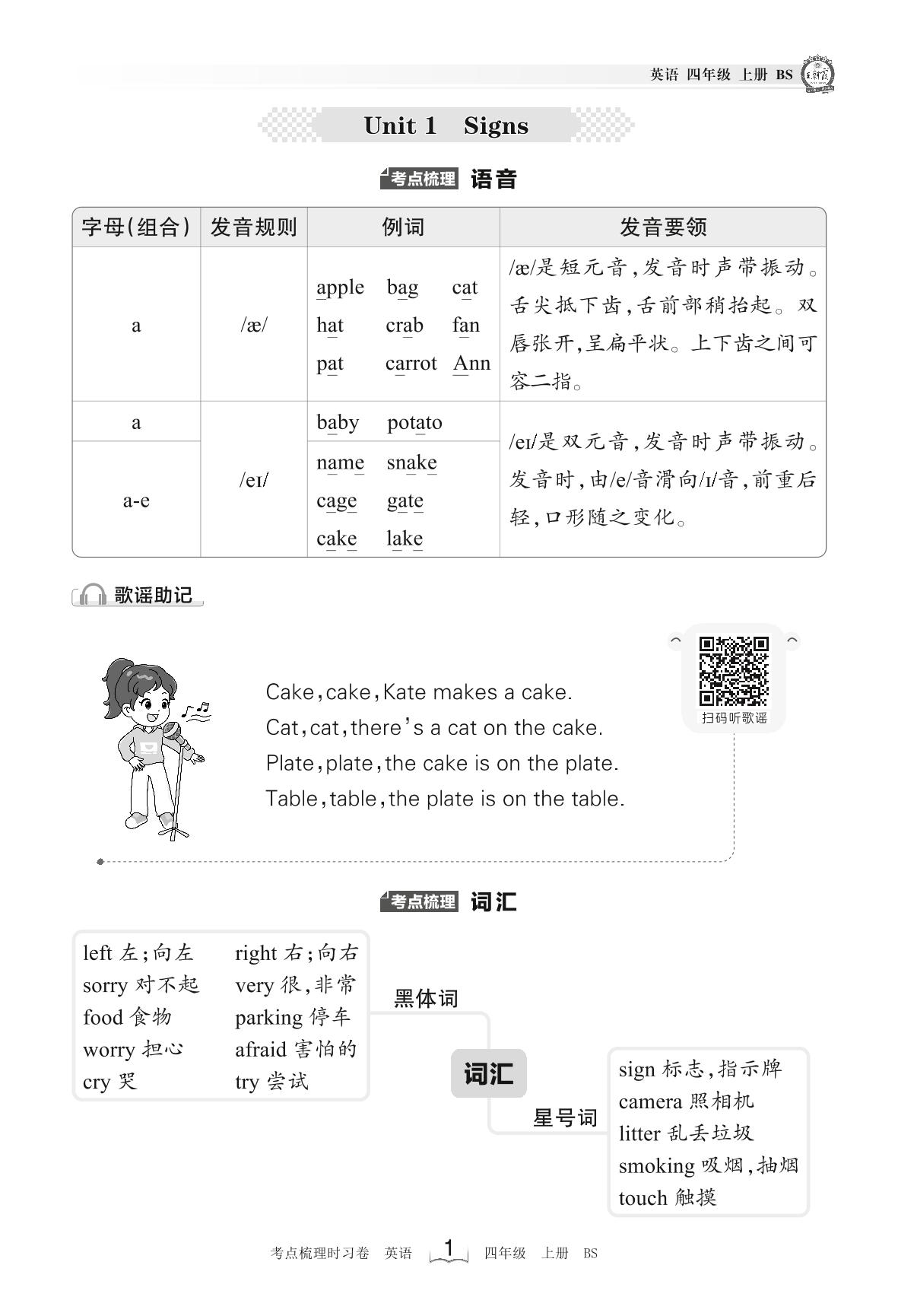 2023上册四年级英语北师版 考点梳理手册——Unit 1 Signs