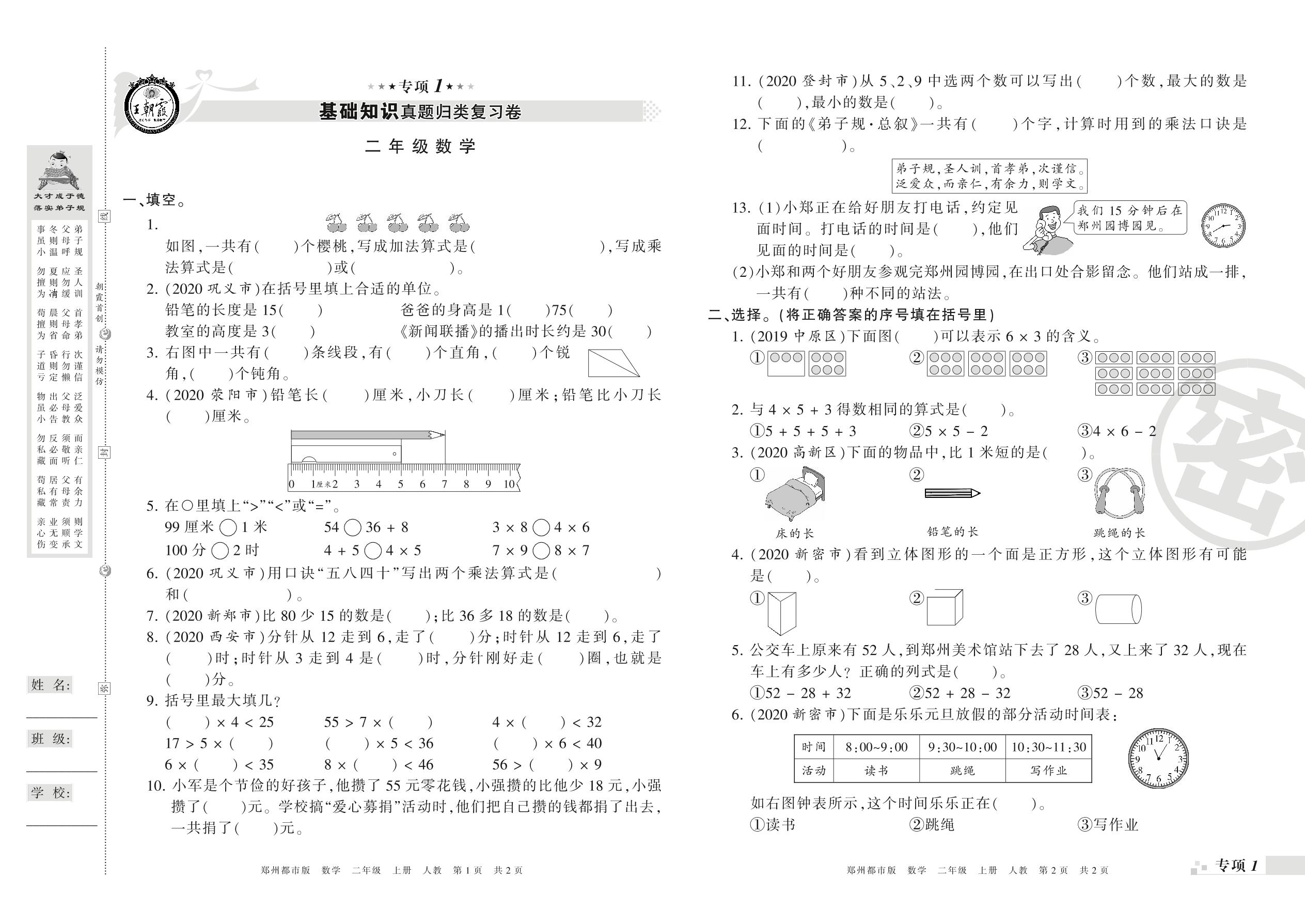 王朝霞期末专项卷——基础知识、计算真题归类复习二年级上册数学(人教版)_R21080390349【0】