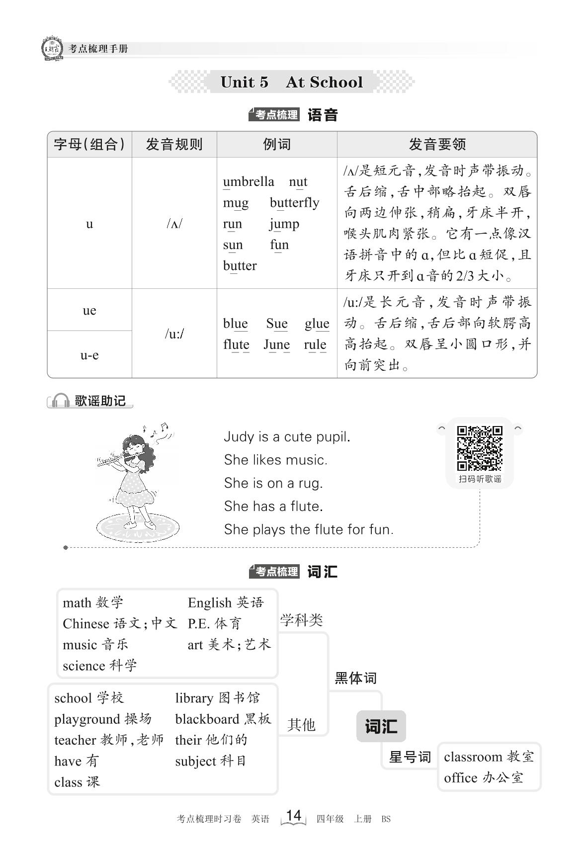 2023上册四年级英语北师版 考点梳理手册——Unit 5 At School