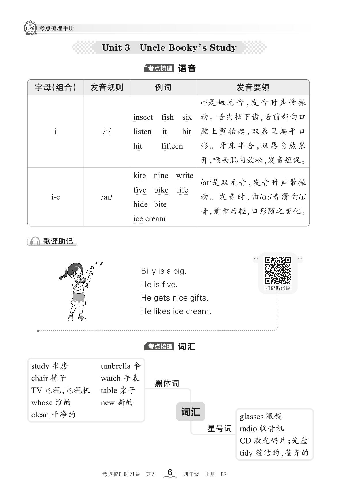 2023上册四年级英语北师版 考点梳理手册——Unit 3 Uncle Booky’s Study