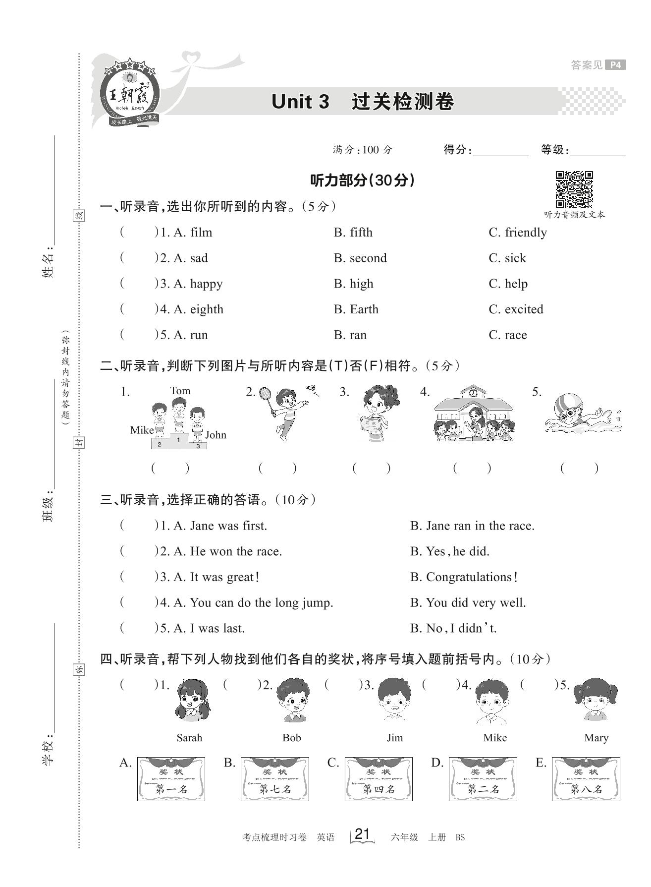 2023上册六年级英语北师版 Unit 3 过关检测卷