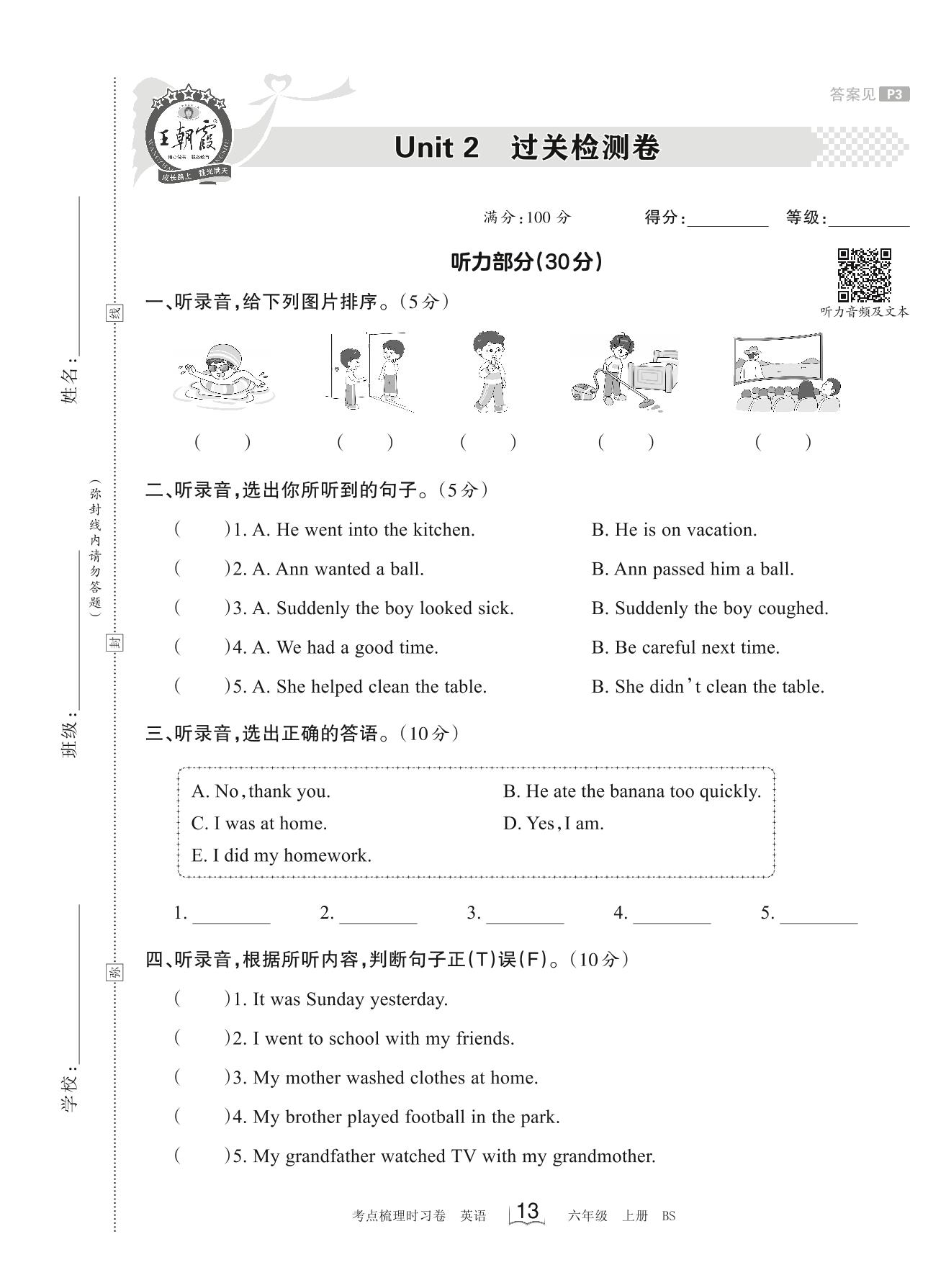 2023上册六年级英语北师版 Unit 2 过关检测卷