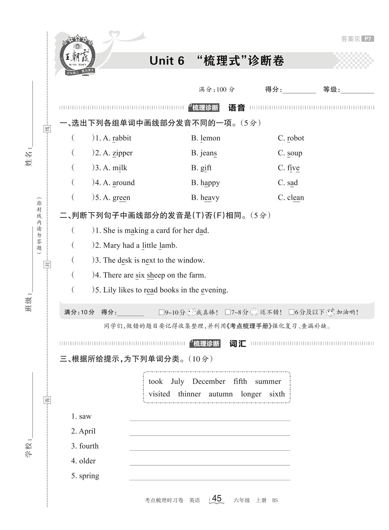 2023上册六年级英语北师版 Unit 6 “梳理式”诊断卷