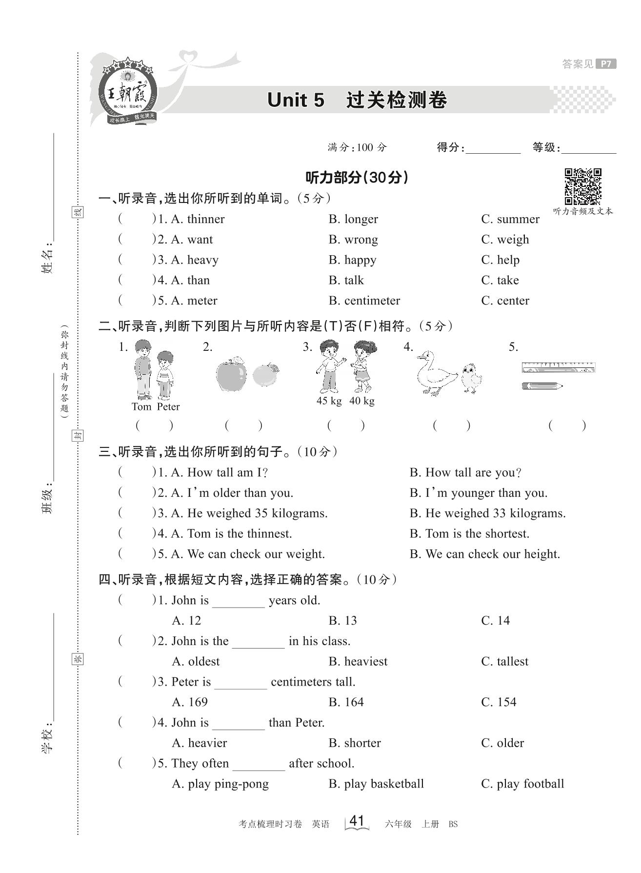 2023上册六年级英语北师版 Unit 5 过关检测卷