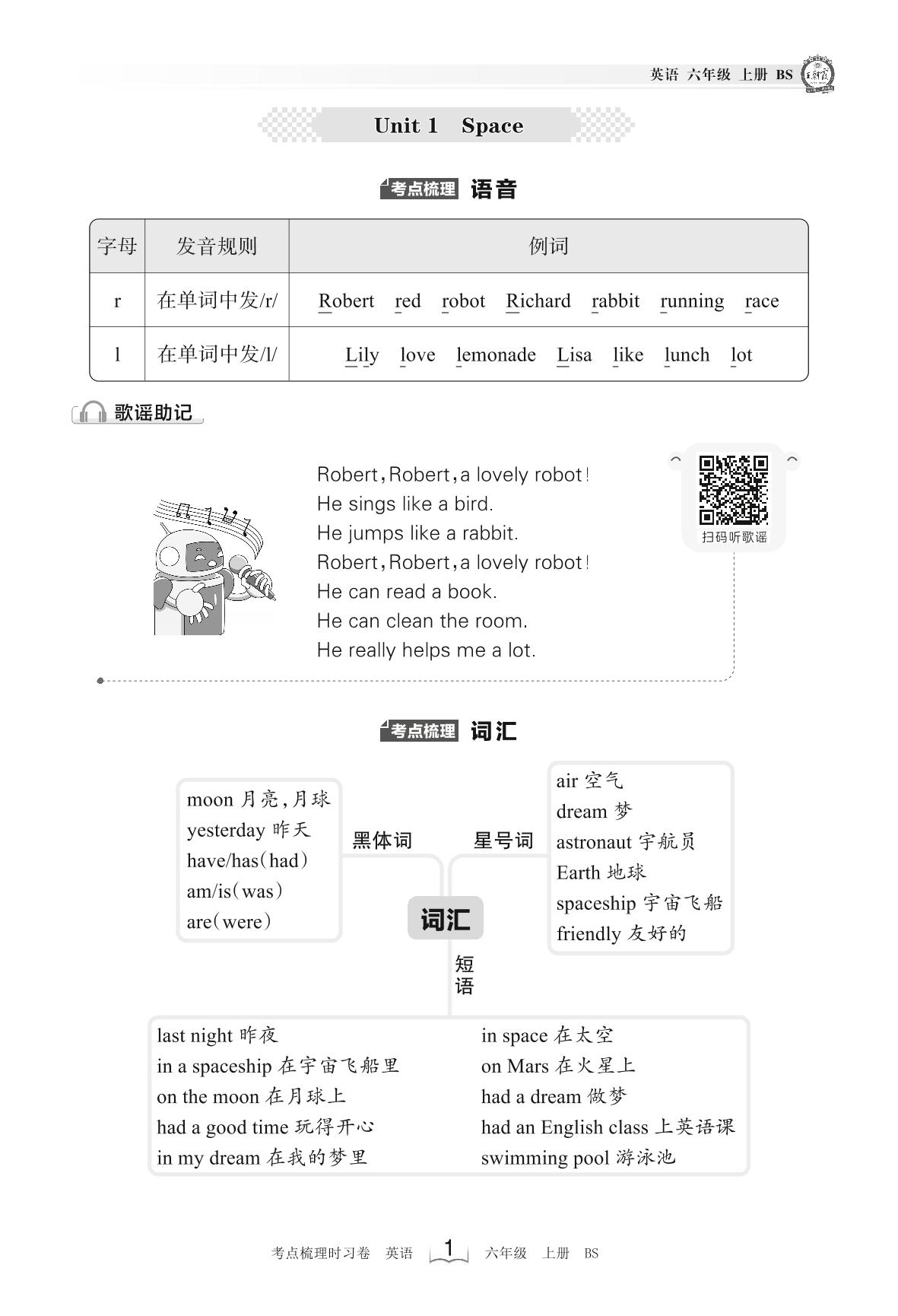 2023上册六年级英语北师版 考点梳理手册——Unit 1 Space