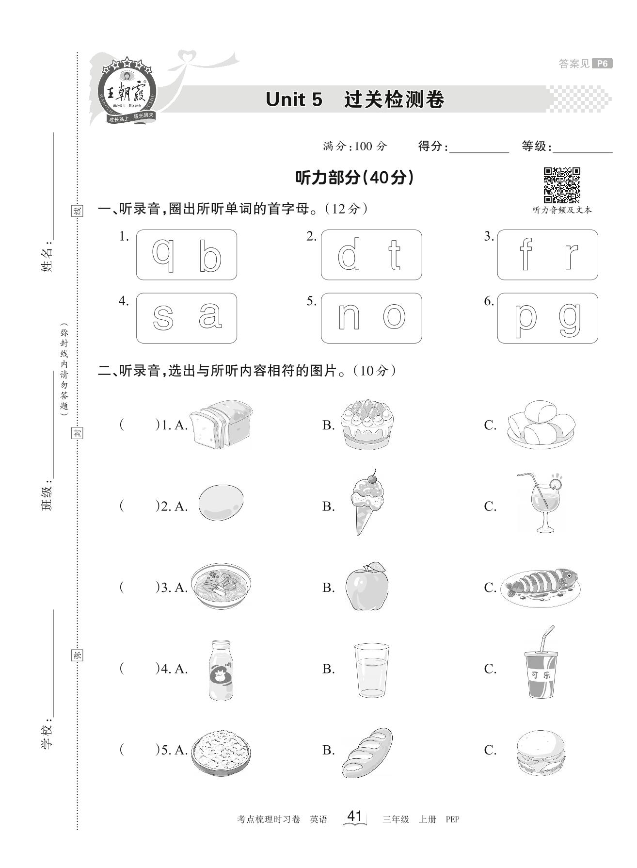 2023上册三年级英语人教PEP版 Unit 5 过关检测卷