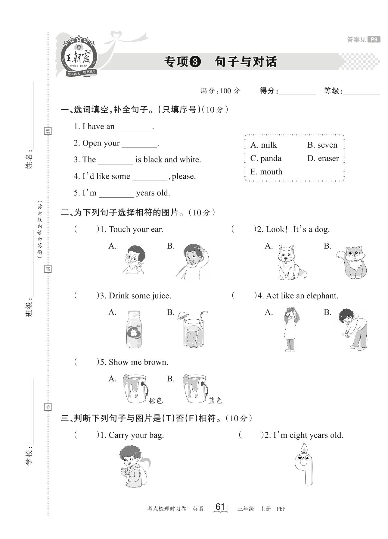 2023上册三年级英语人教PEP版 专项3 句子与对话