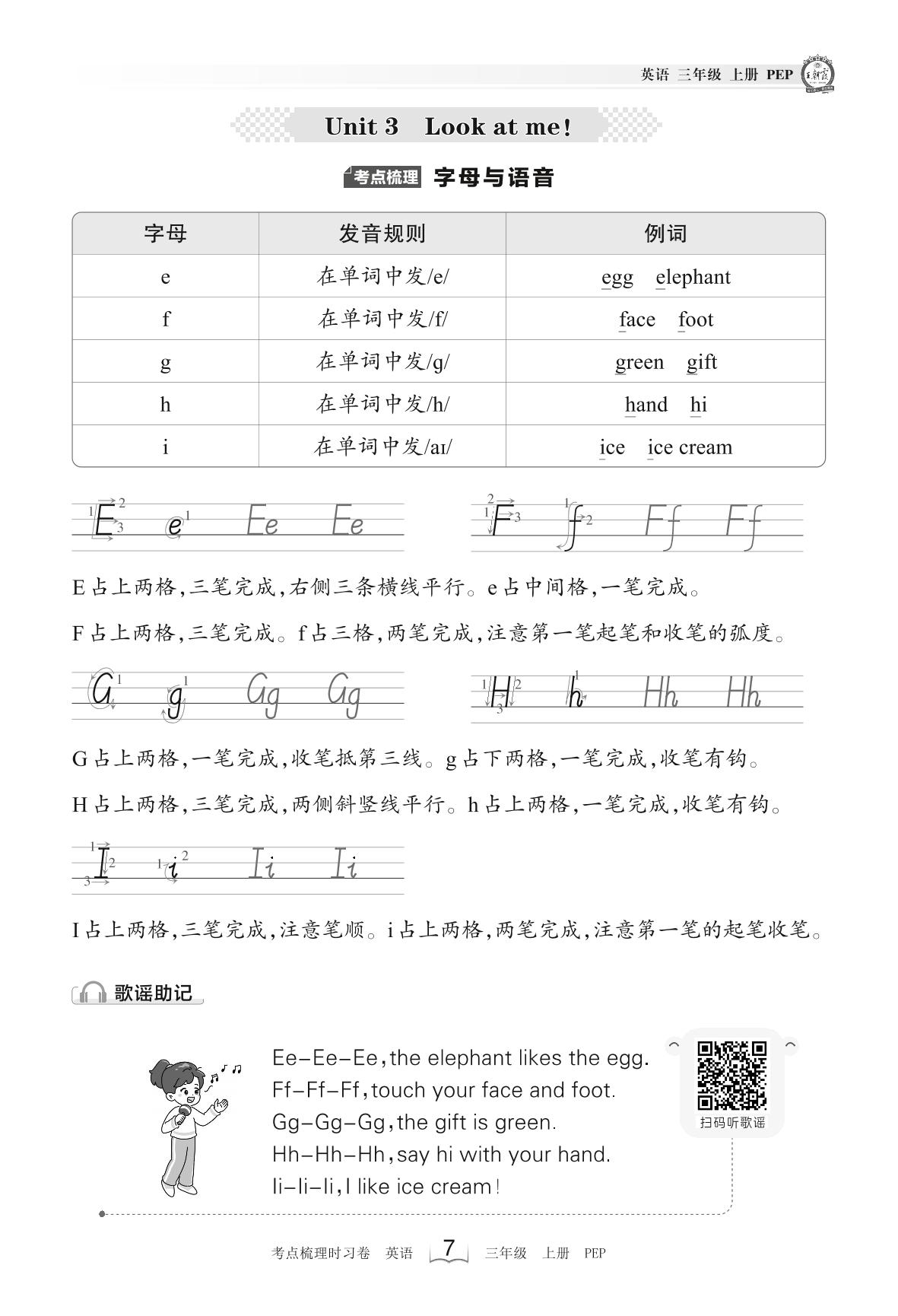 2023上册三年级英语人教PEP版 考点梳理手册——Unit 3 Look at me!