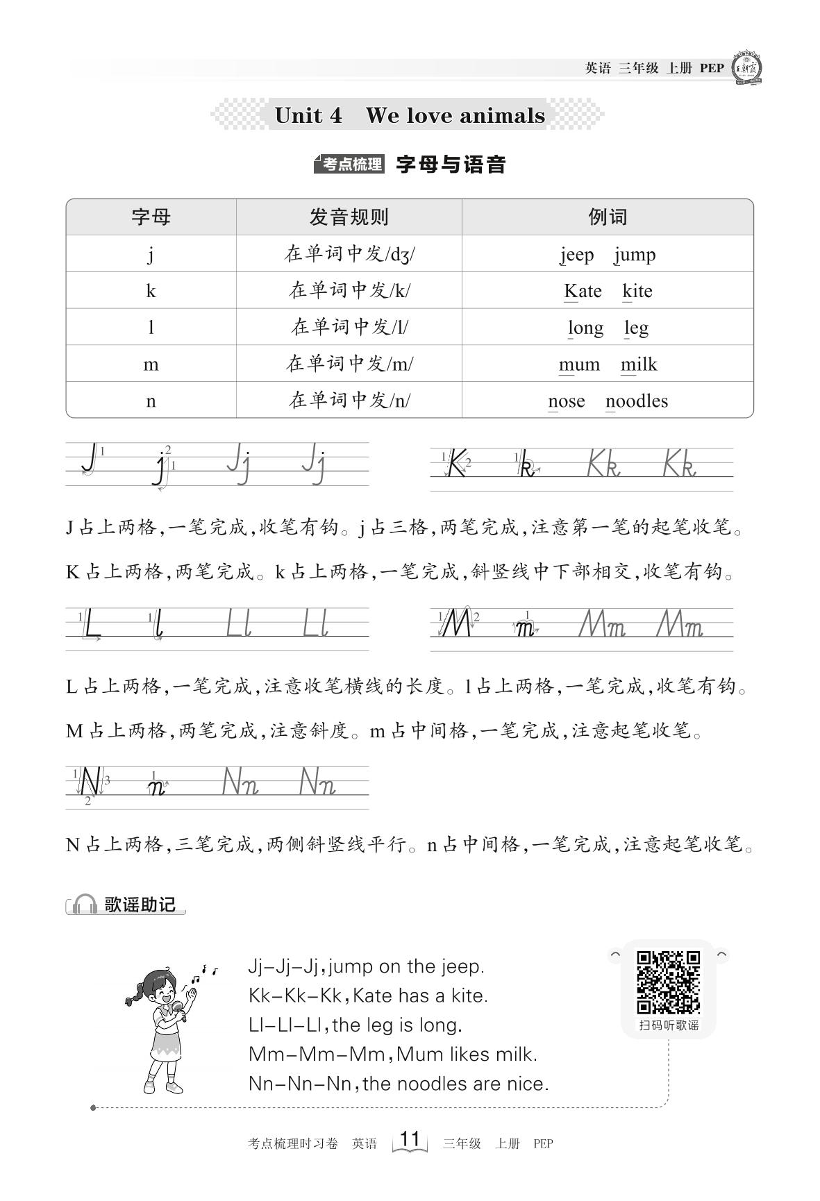 2023上册三年级英语人教PEP版 考点梳理手册——Unit 4 We love animals