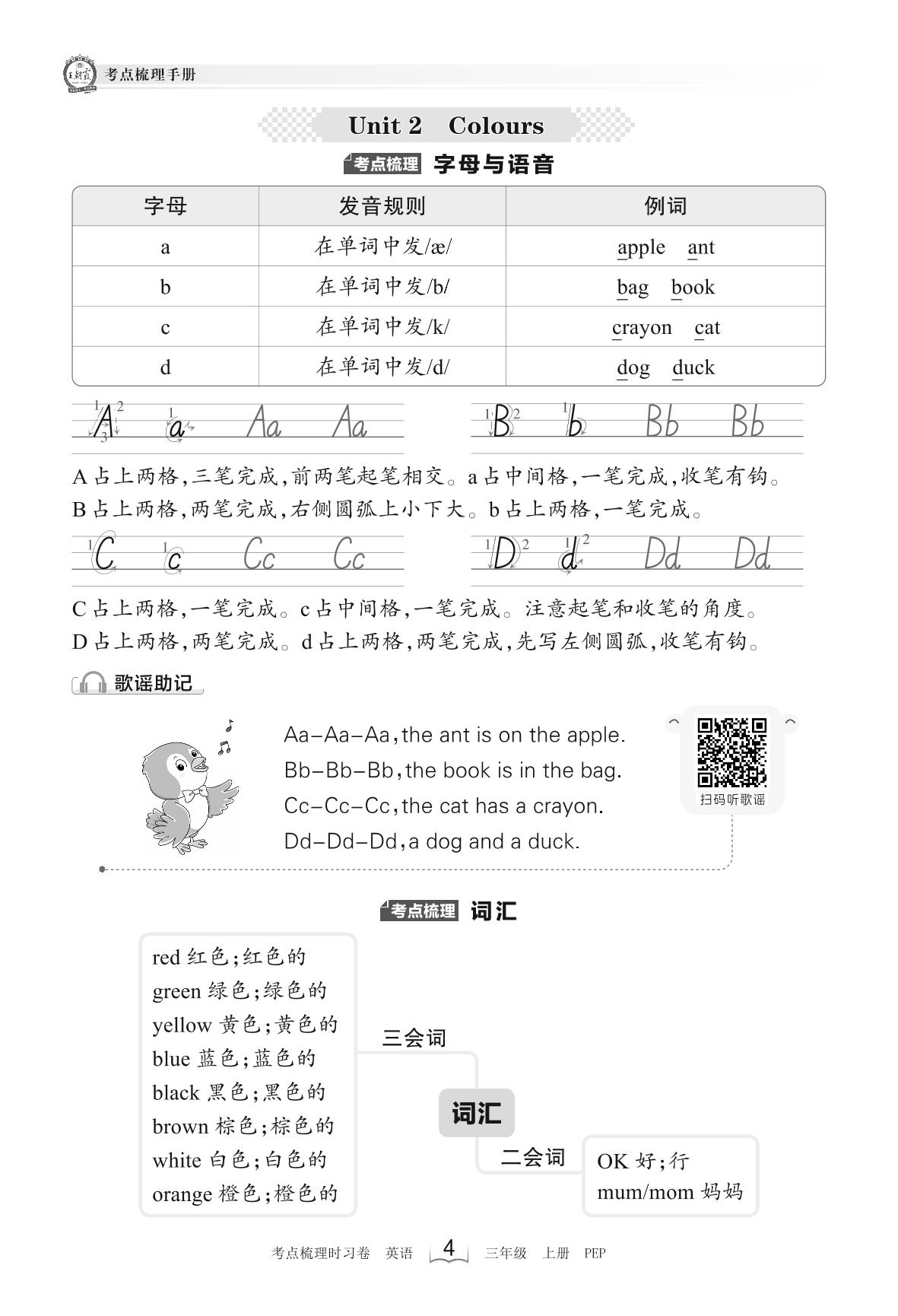 2023上册三年级英语人教PEP版 考点梳理手册——Unit 2 Colours