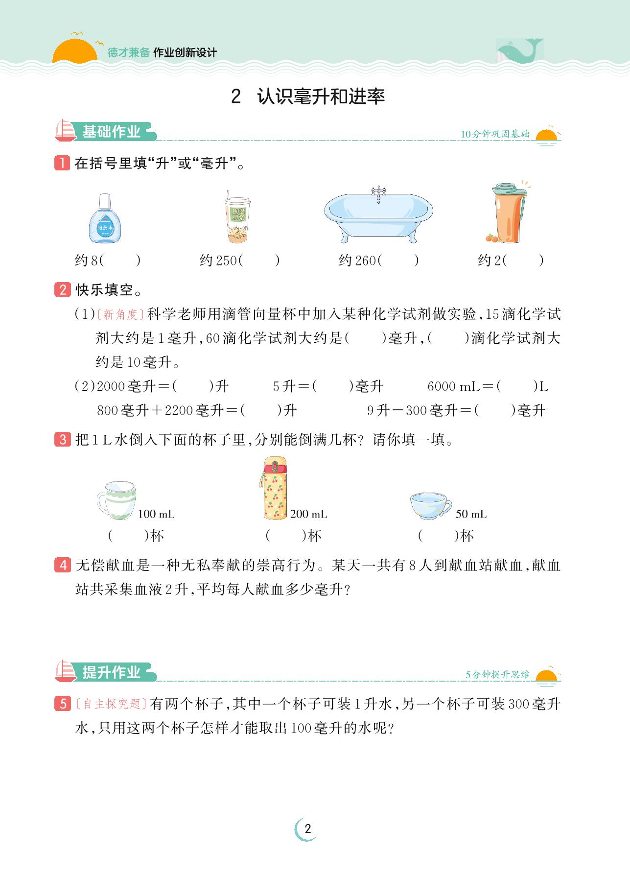 2023上册四年级数学苏教版 第一单元 升和毫升——2 认识毫升和进率