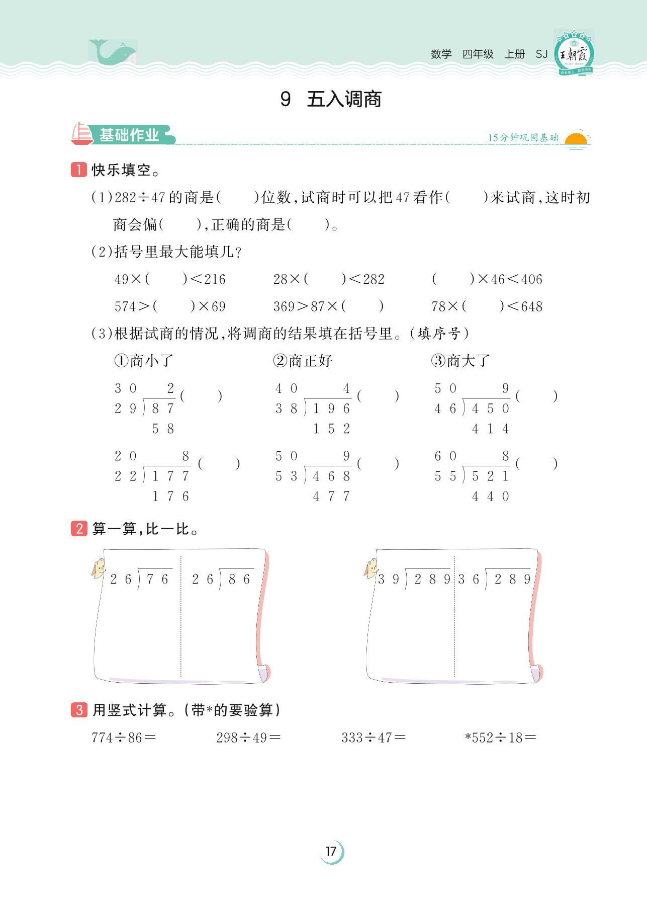 2023上册四年级数学苏教版 第二单元 两、三位数除以两位数——9 五入调商