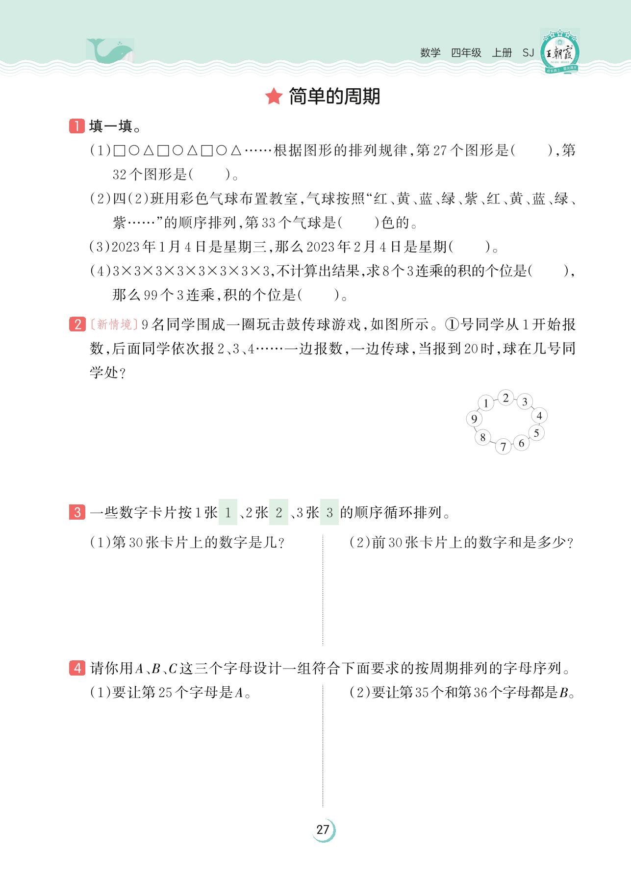 2023上册四年级数学苏教版 第二单元 两、三位数除以两位数——简单的周期
