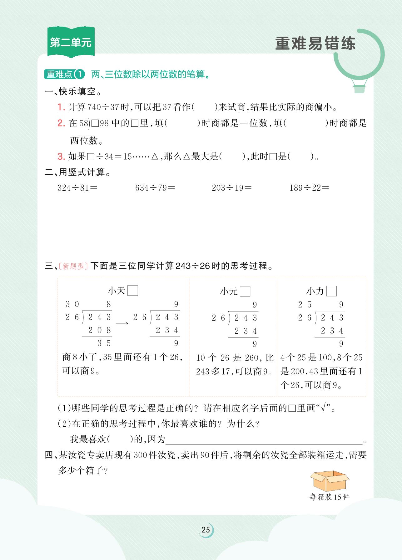 2023上册四年级数学苏教版 第二单元重难易错练