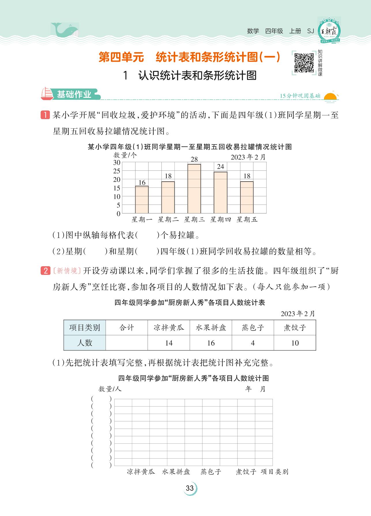 2023上册四年级数学苏教版 第四单元 统计表和条形统计图(一)——1 认识统计表和条形统计图