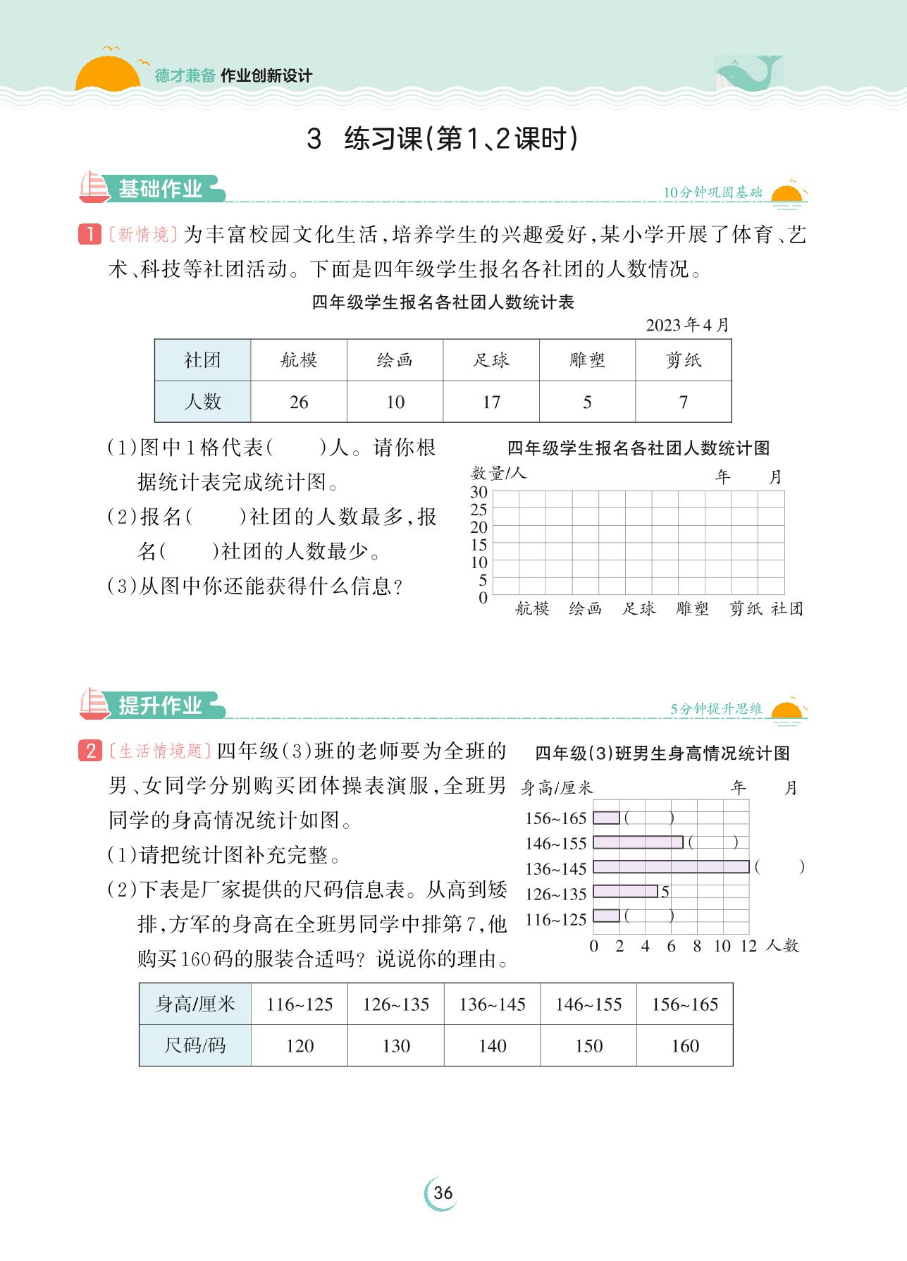 2023上册四年级数学苏教版 第四单元 统计表和条形统计图(一)——3 练习课(第1、2课时)