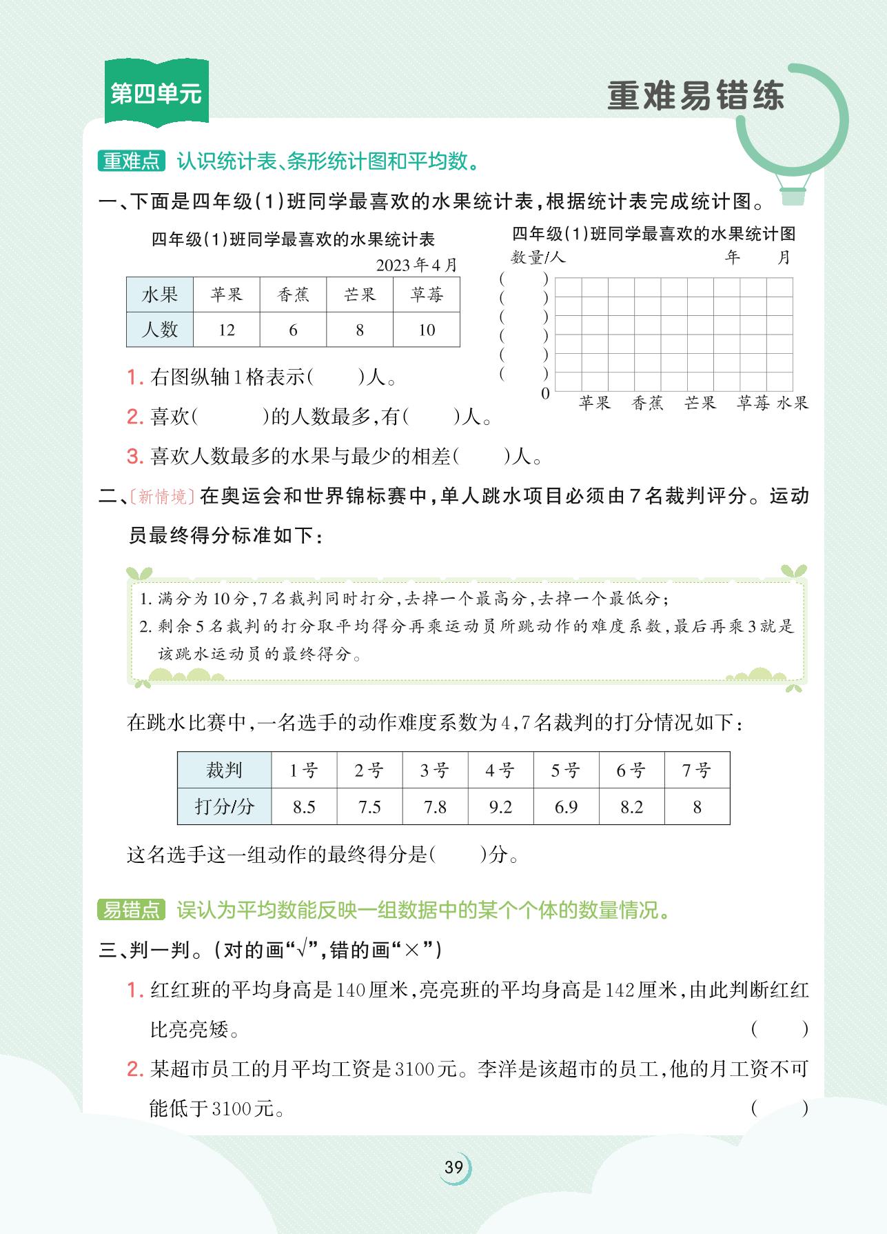 2023上册四年级数学苏教版 第四单元重难易错练