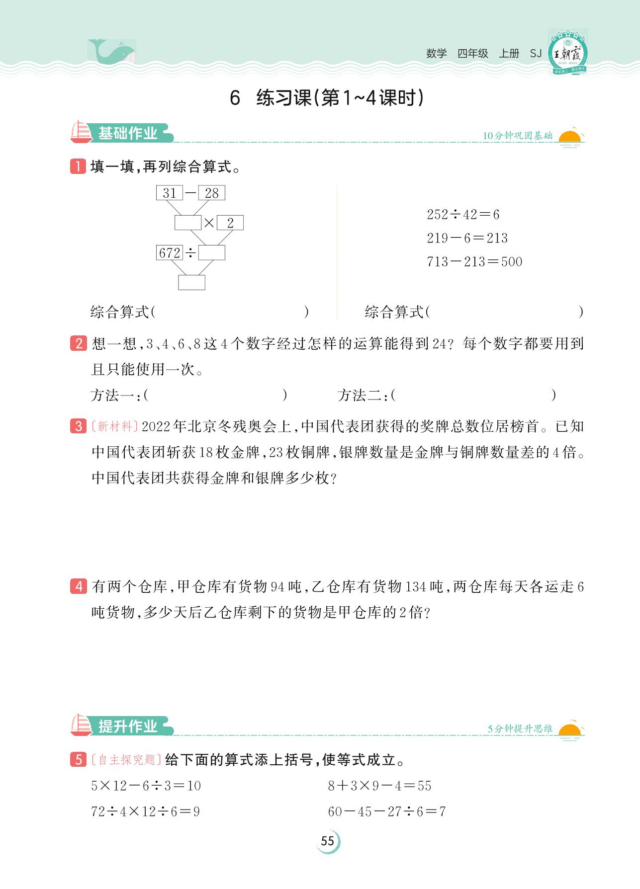 2023上册四年级数学苏教版 第七单元 整数四则混合运算——6 练习课(第1~4课时)