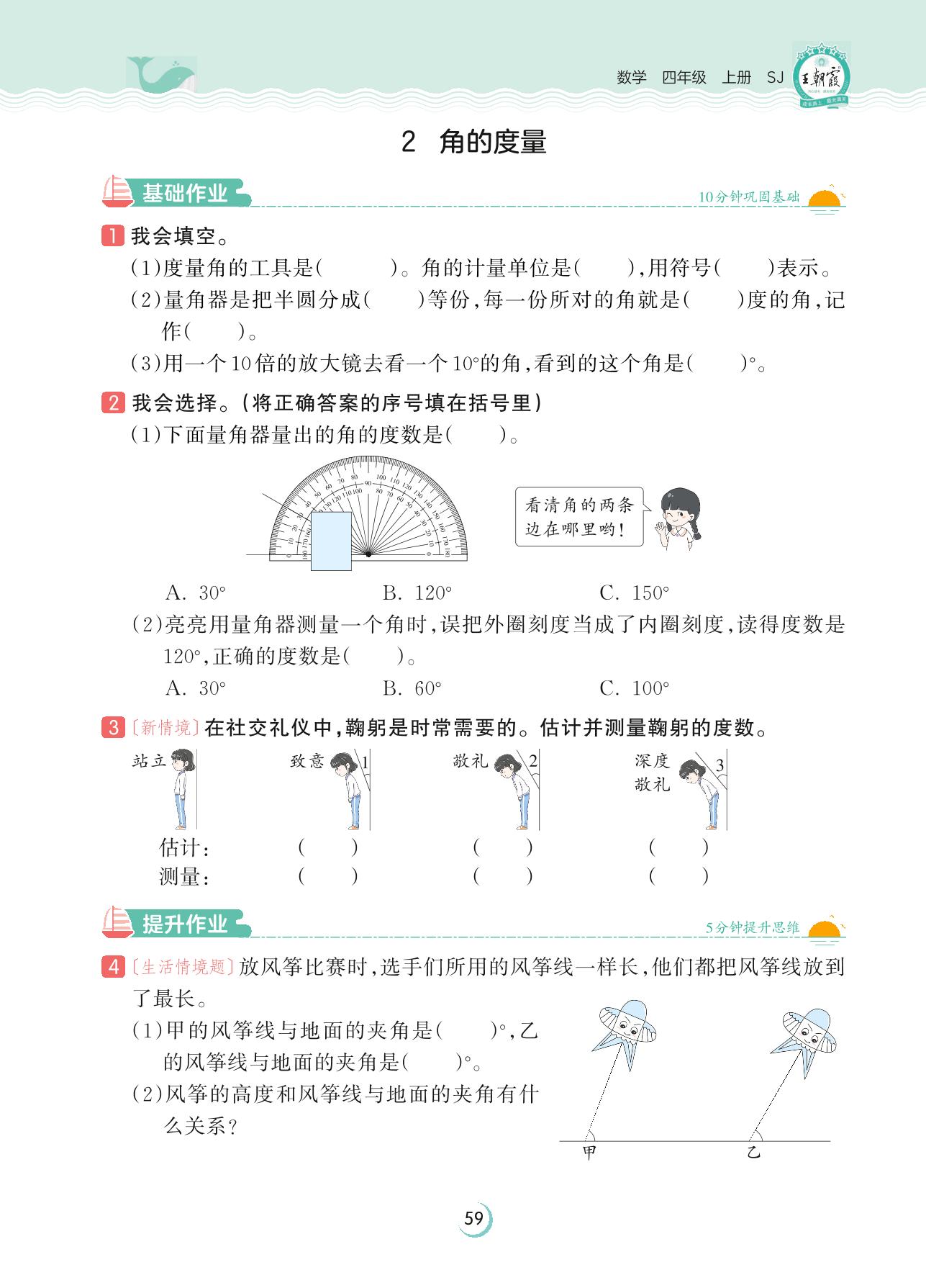 2023上册四年级数学苏教版 第八单元 垂线与平行线——2 角的度量