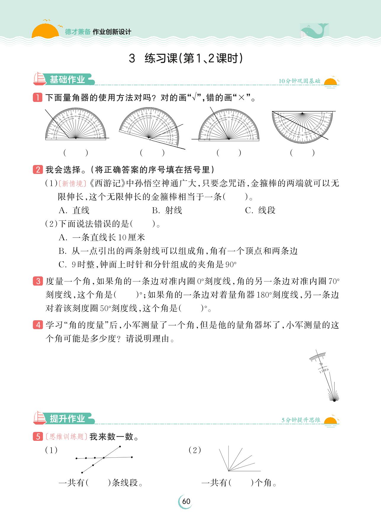 2023上册四年级数学苏教版 第八单元 垂线与平行线——3 练习课(第1、2课时)