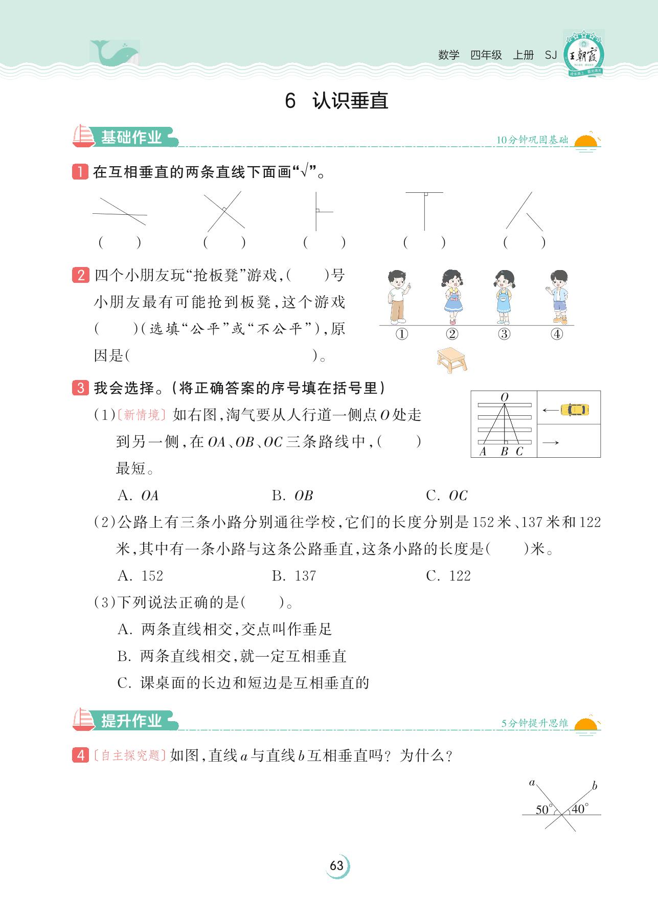 2023上册四年级数学苏教版 第八单元 垂线与平行线——6 认识垂直