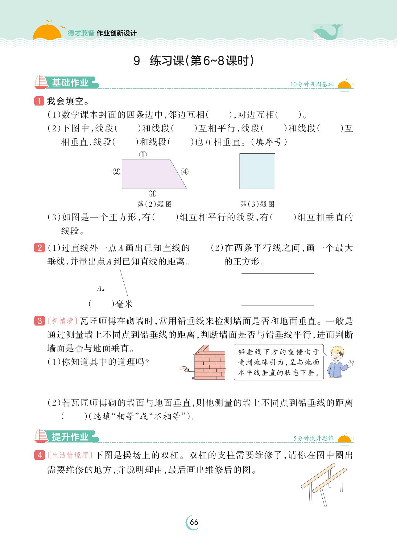 2023上册四年级数学苏教版 第八单元 垂线与平行线——9 练习课(第6~8课时)