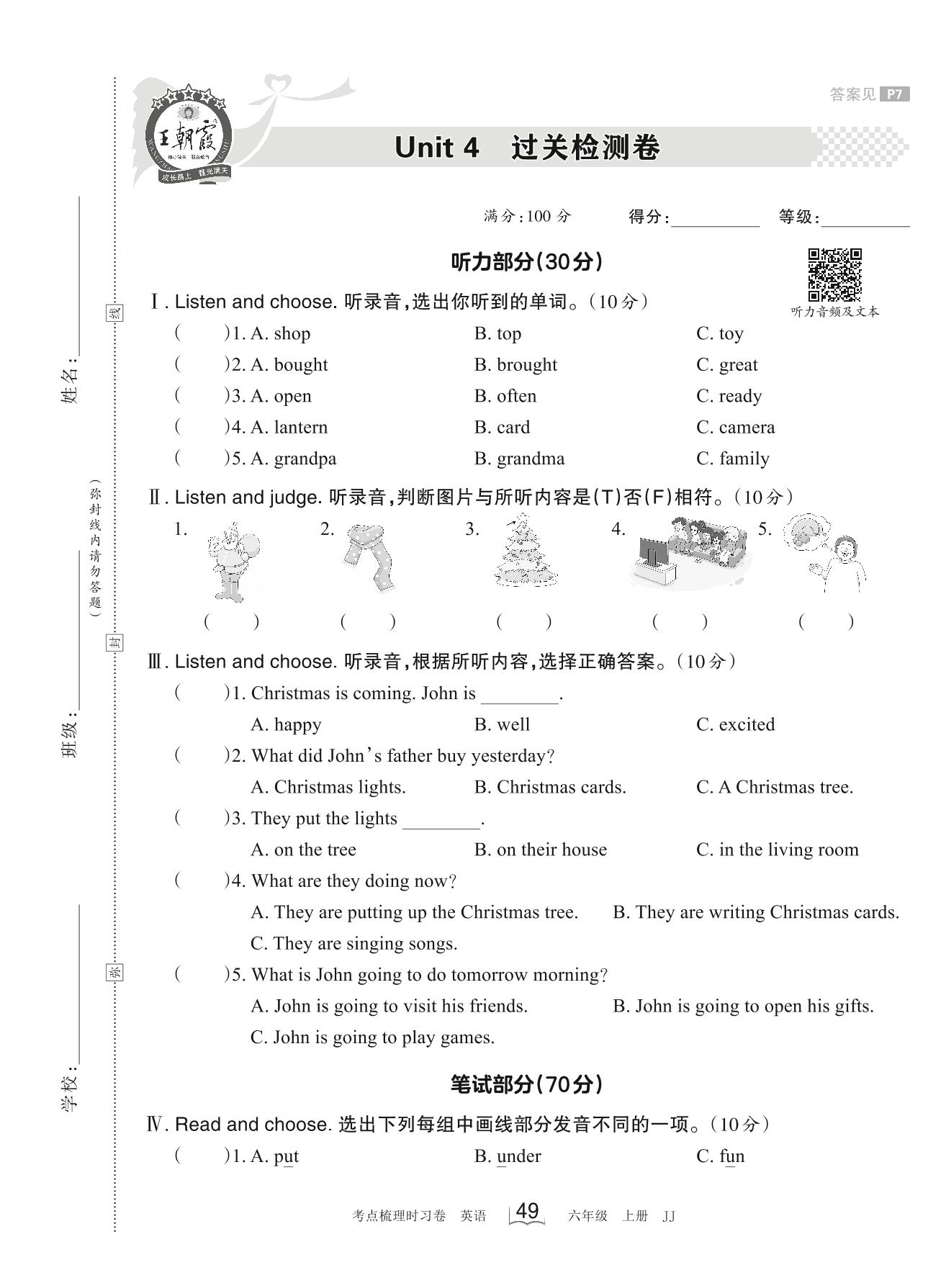 六年级英语冀教版上册单元卷