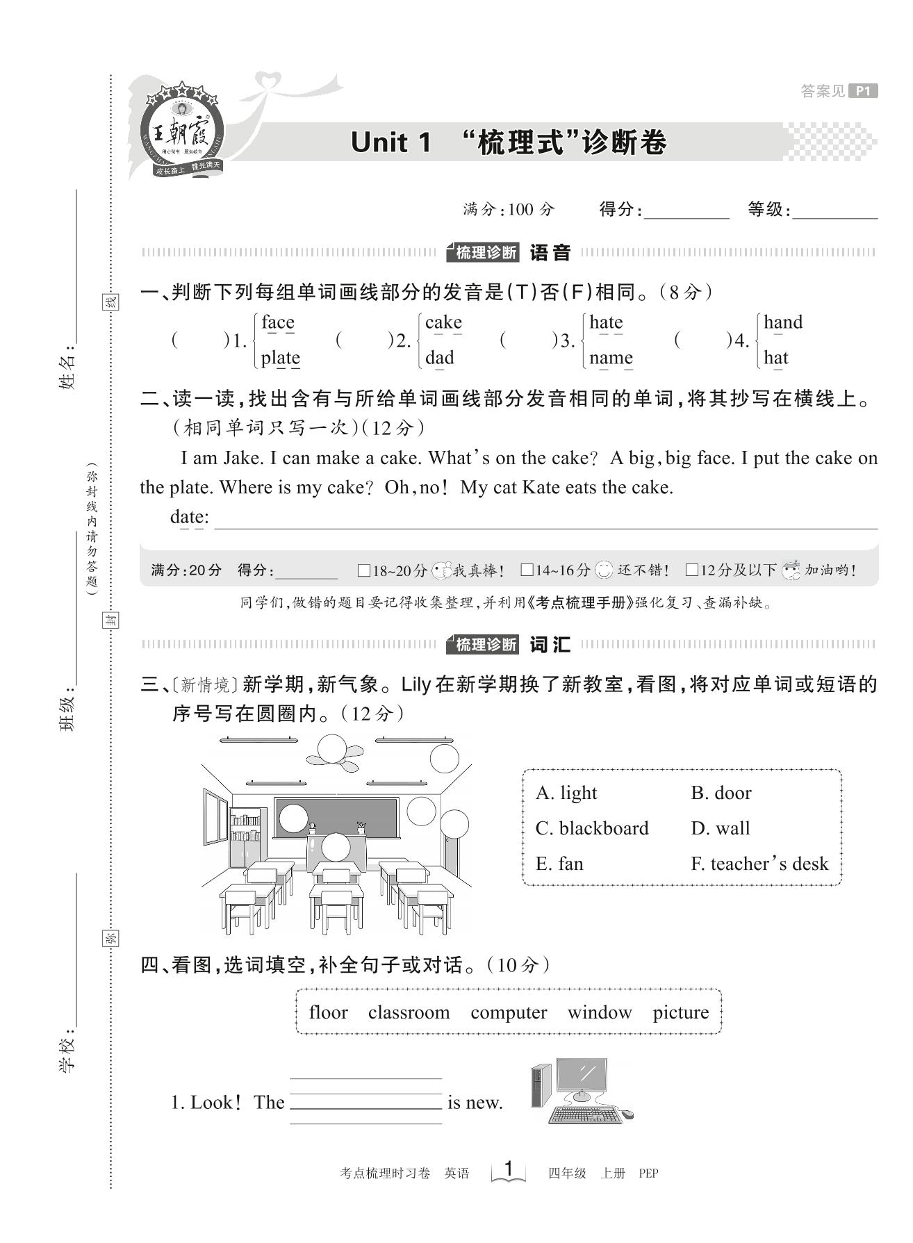 2023上册四年级英语人教PEP版 Unit 1 “梳理式”诊断卷