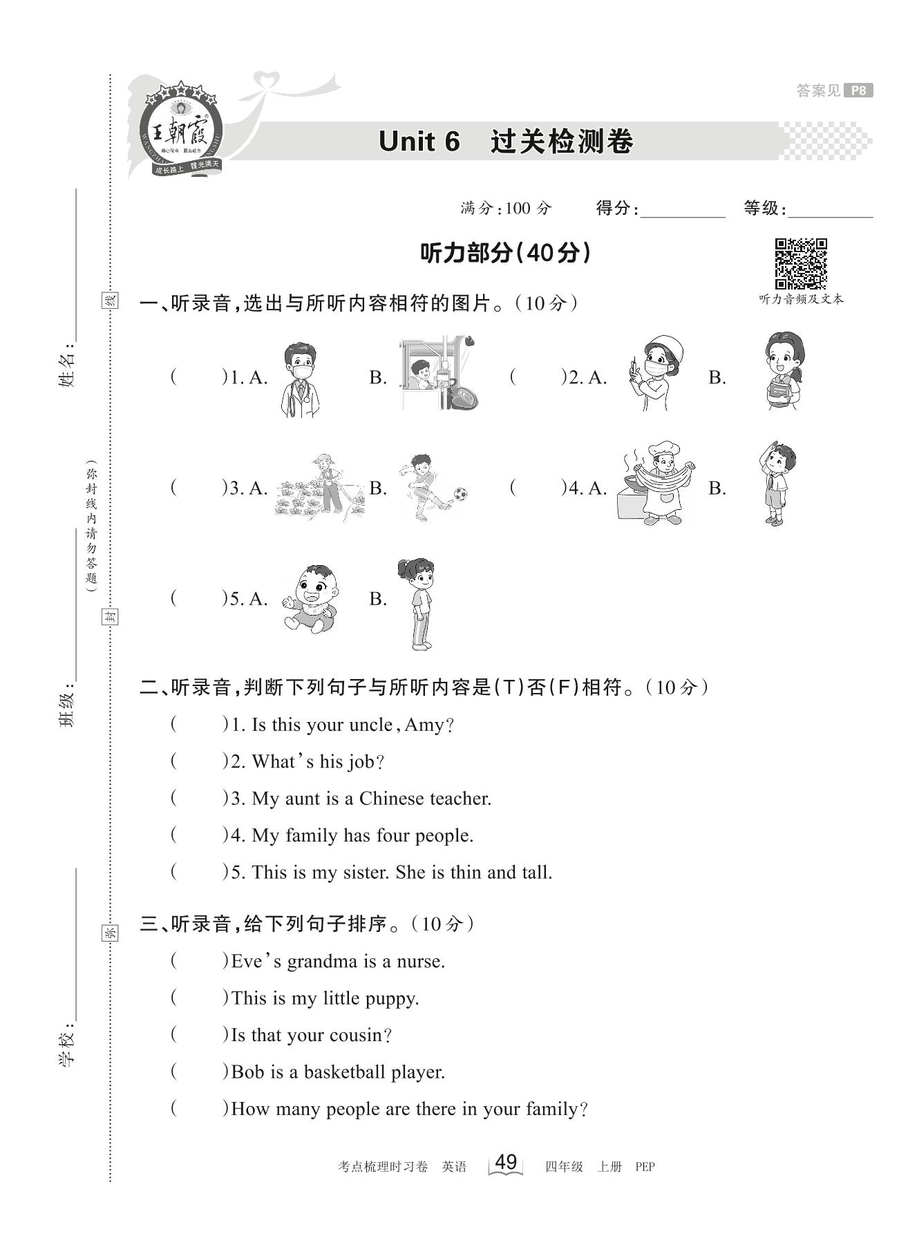 2023上册四年级英语人教PEP版 Unit 6 过关检测卷