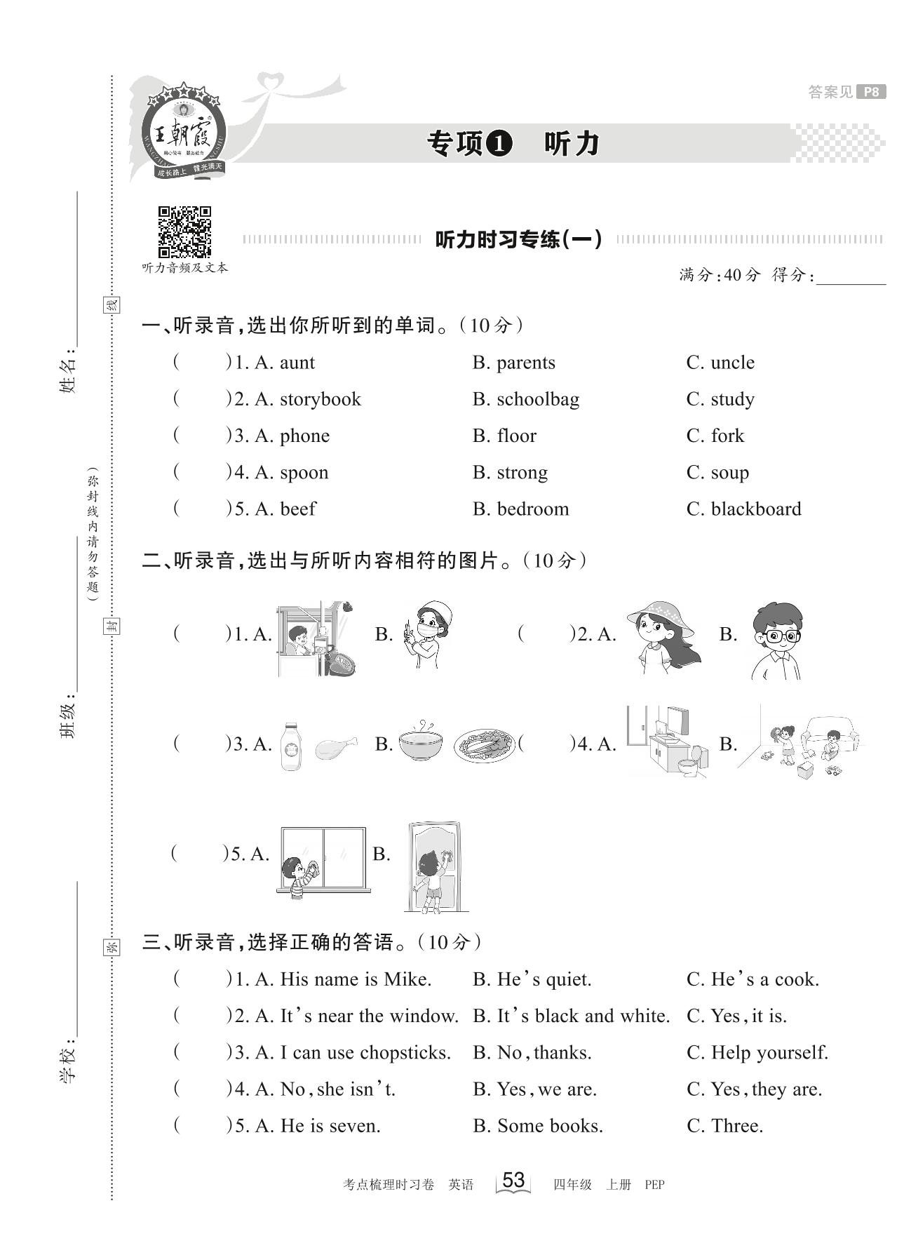 2023上册四年级英语人教PEP版 专项1 听力