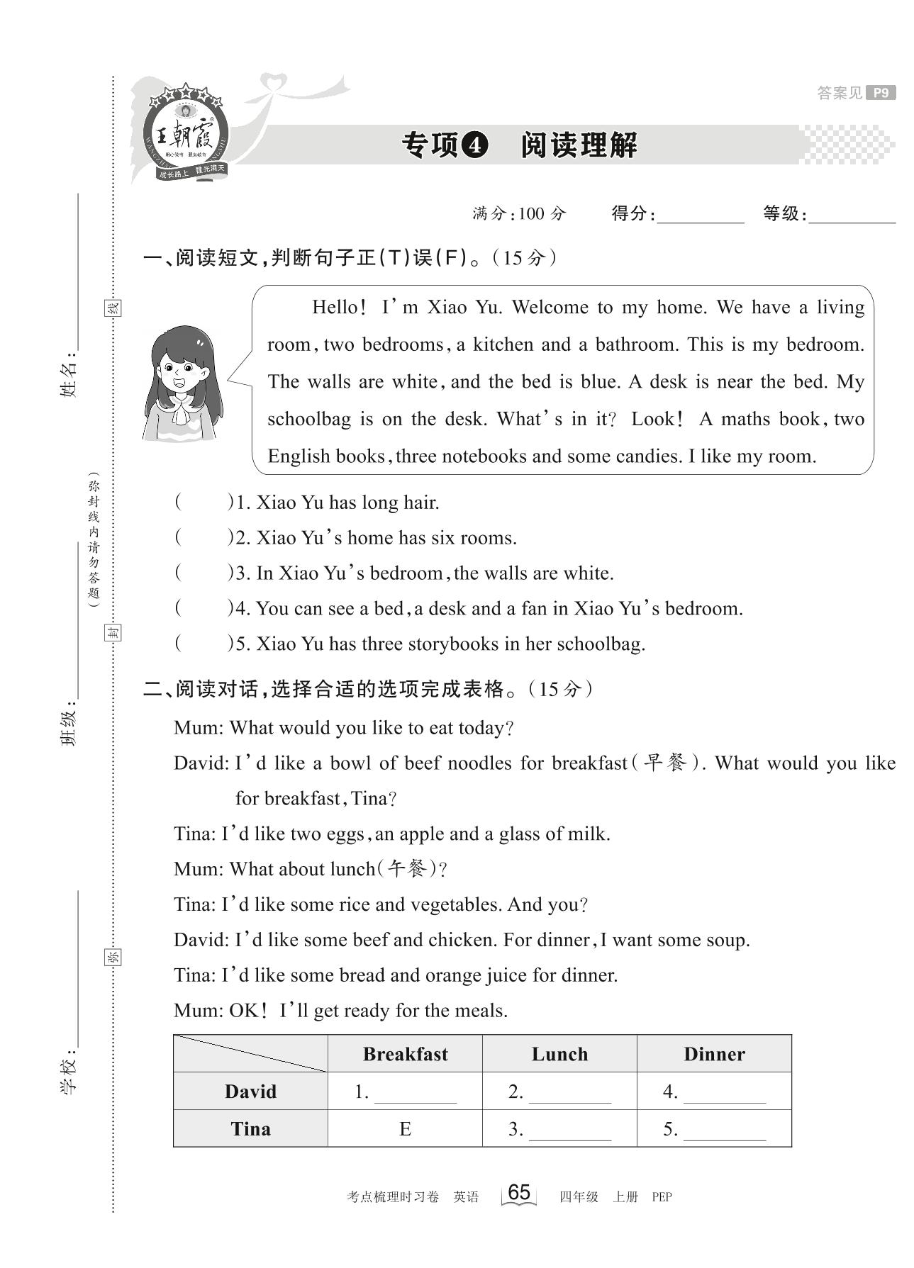 2023上册四年级英语人教PEP版 专项4 阅读理解