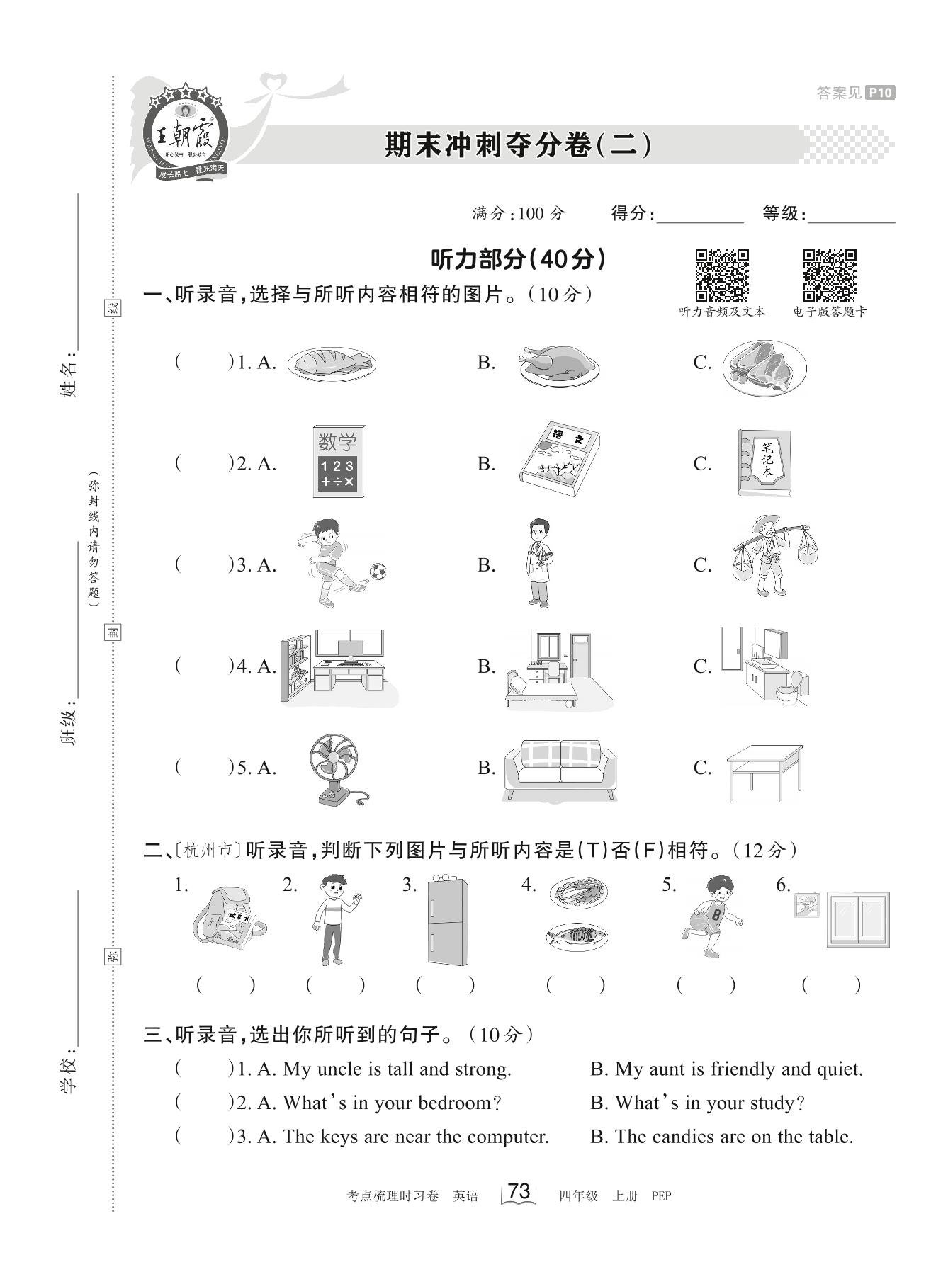 2023上册四年级英语人教PEP版 期末冲刺夺分卷(二)