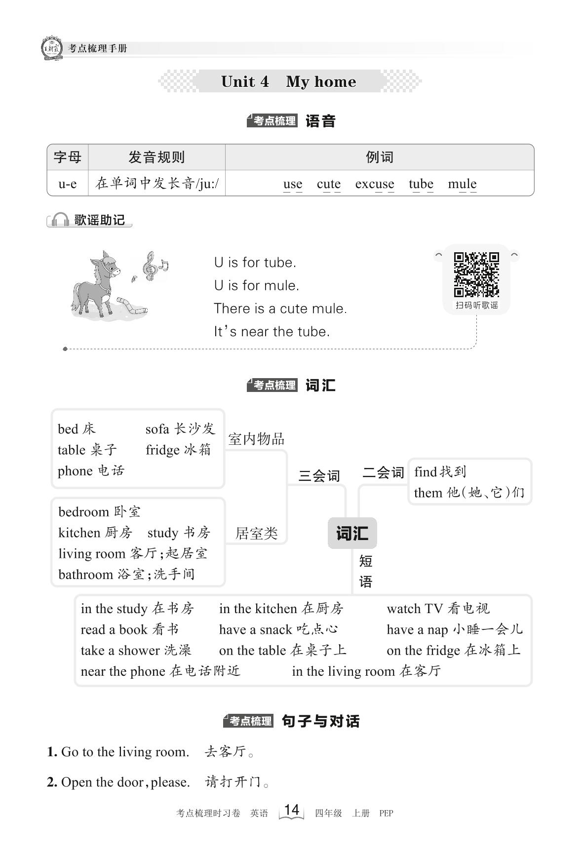 2023上册四年级英语人教PEP版 考点梳理手册——Unit 4 My home