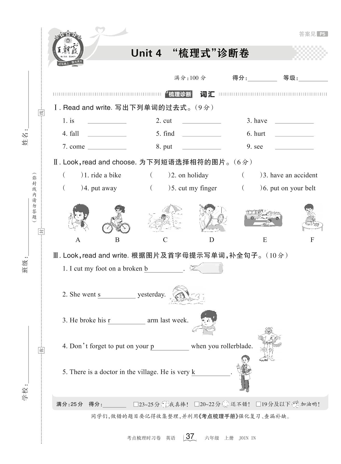 2023上册六年级英语剑桥版 Unit 4 “梳理式”诊断卷
