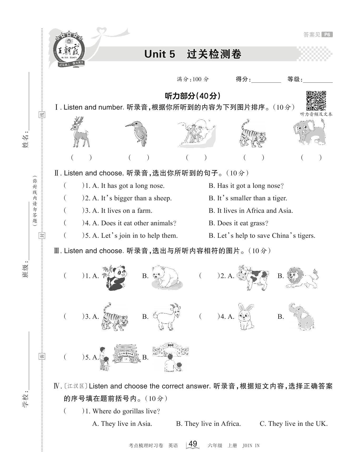 2023上册六年级英语剑桥版 Unit 5 过关检测卷