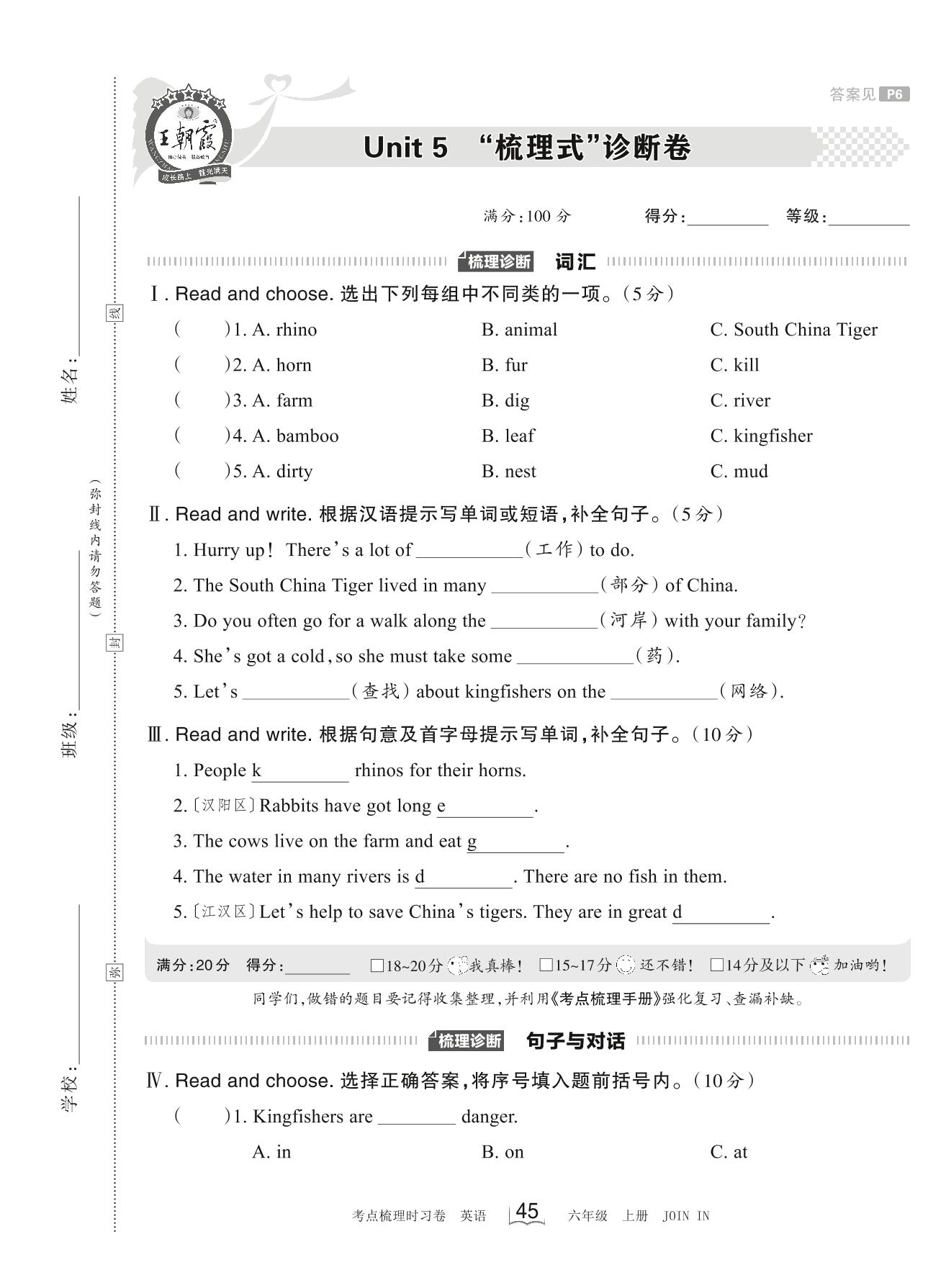 2023上册六年级英语剑桥版 Unit 5 “梳理式”诊断卷