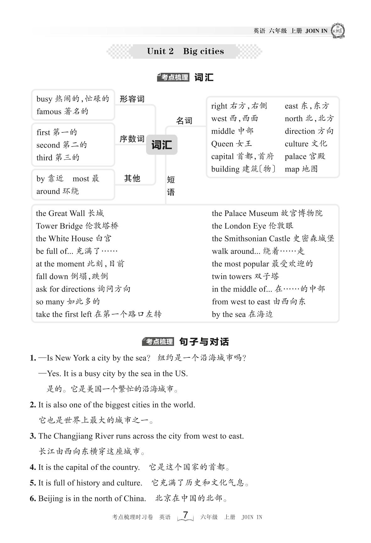 2023上册六年级英语剑桥版 考点梳理手册——Unit 2 Big cities
