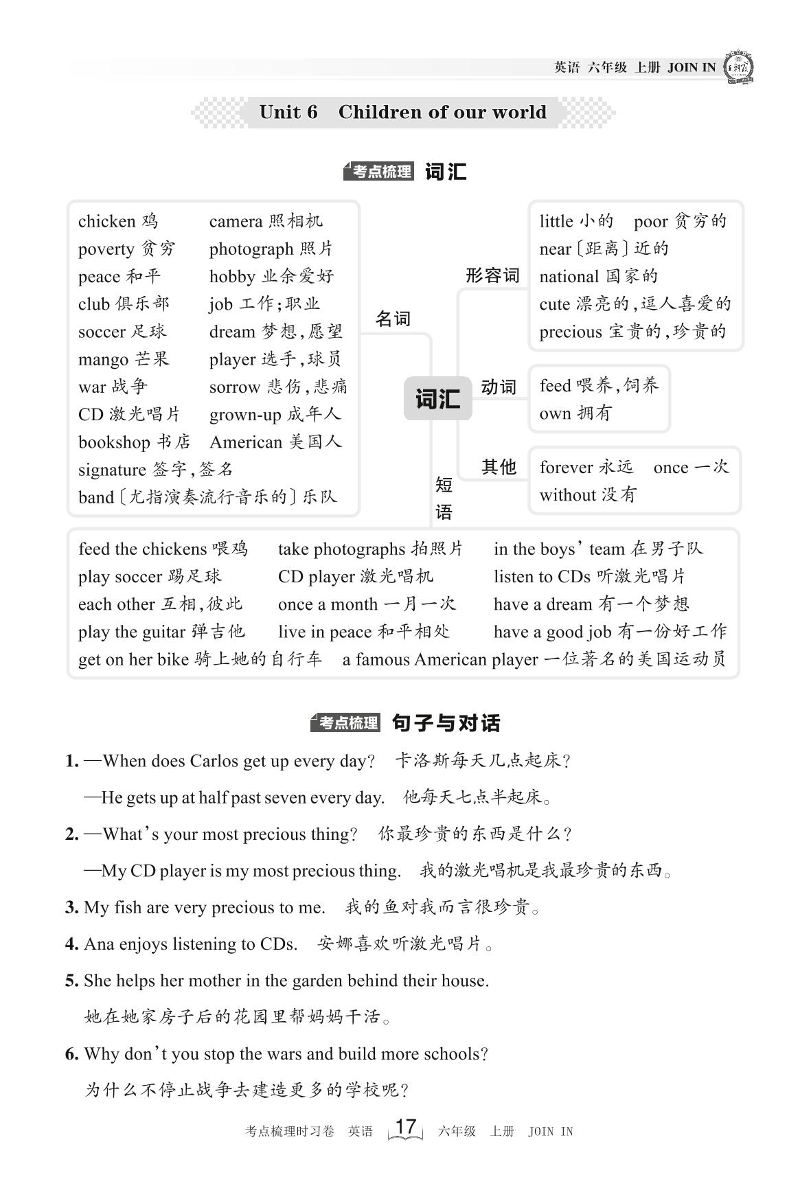 2023上册六年级英语剑桥版 考点梳理手册——Unit 6 Children of our world