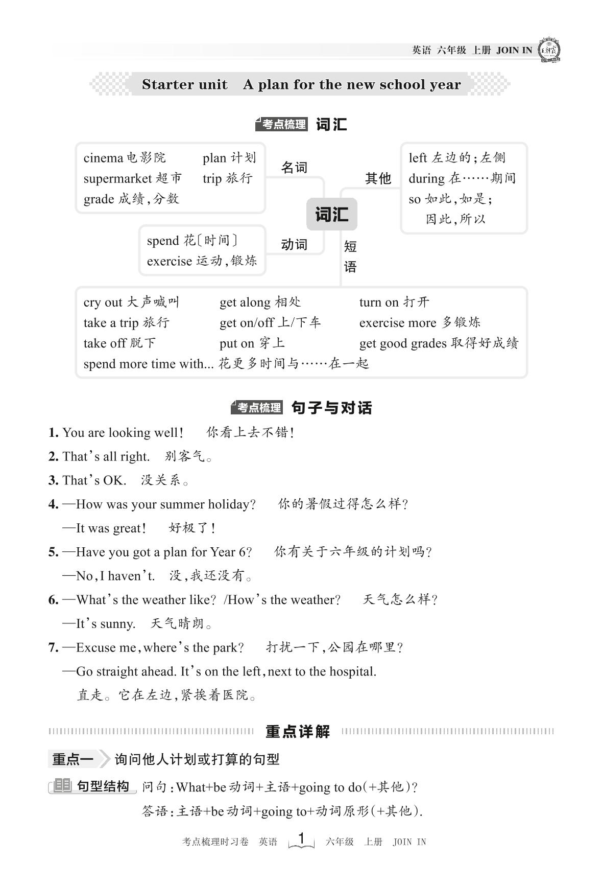 2023上册六年级英语剑桥版 考点梳理手册——Starter unit A plan for the new school year