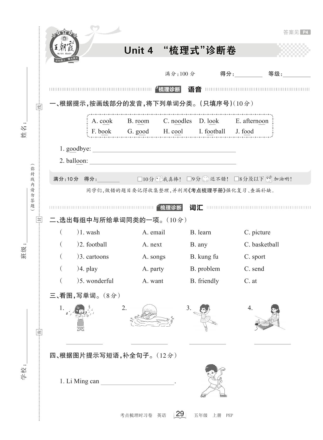 2023上册五年级英语人教PEP版 Unit 4 “梳理式”诊断卷
