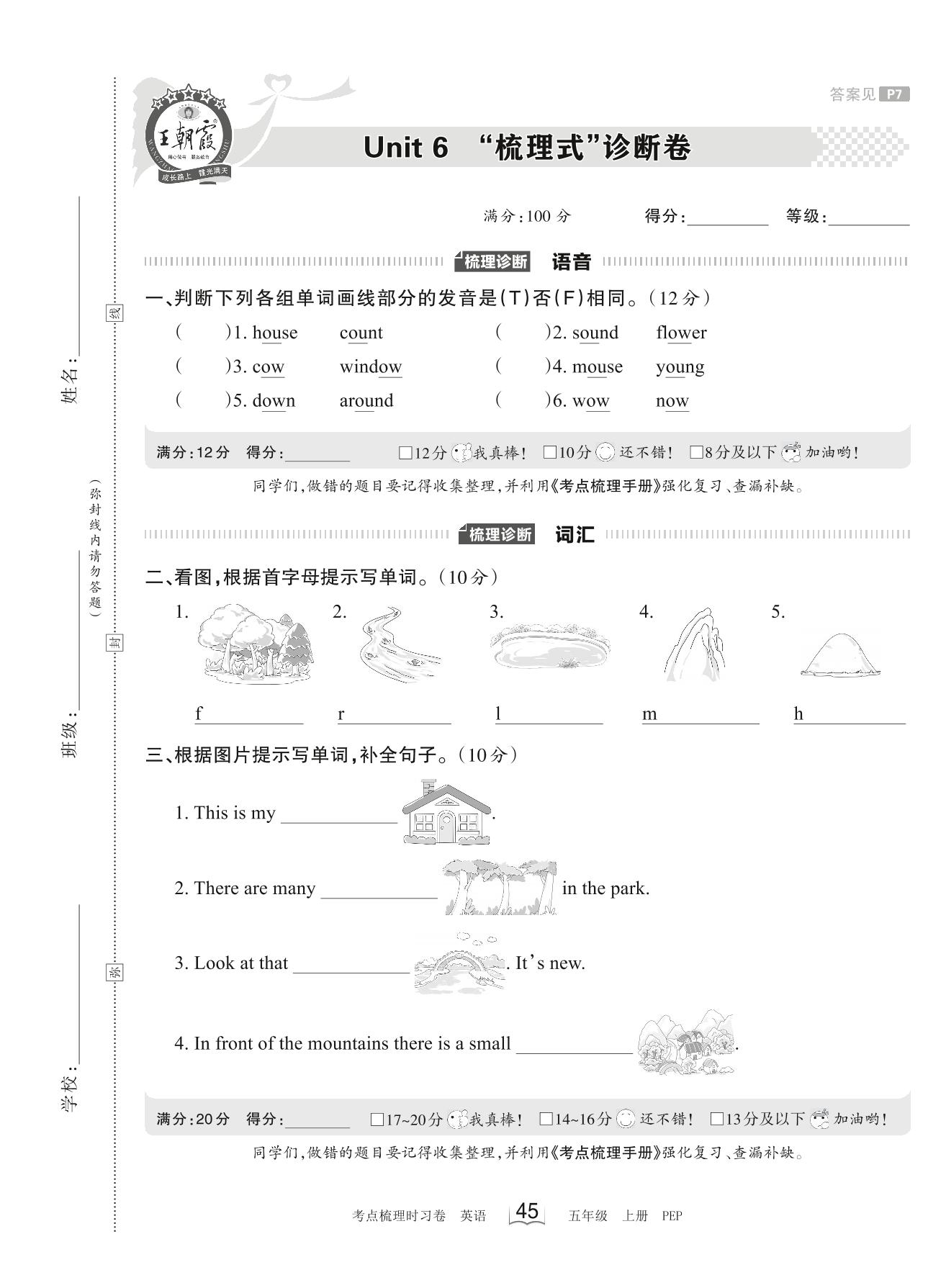 2023上册五年级英语人教PEP版 Unit 6 “梳理式”诊断卷