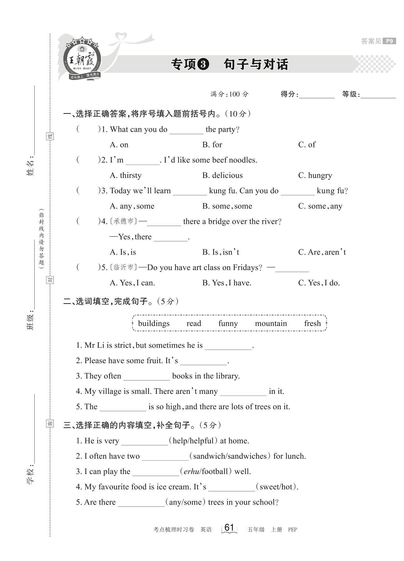 2023上册五年级英语人教PEP版 专项3 句子与对话