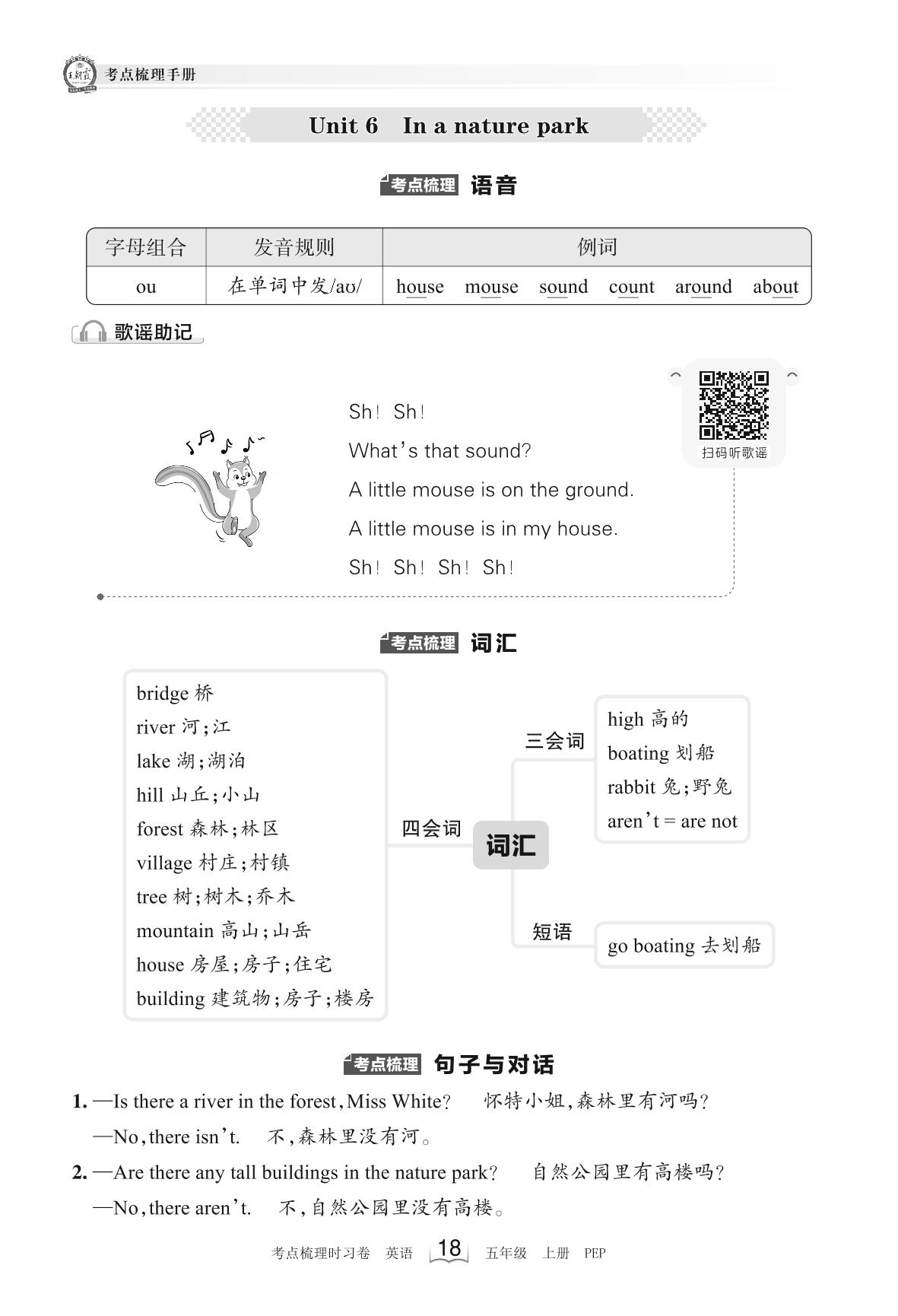 2023上册五年级英语人教PEP版 考点梳理手册——Unit 6 In a nature park